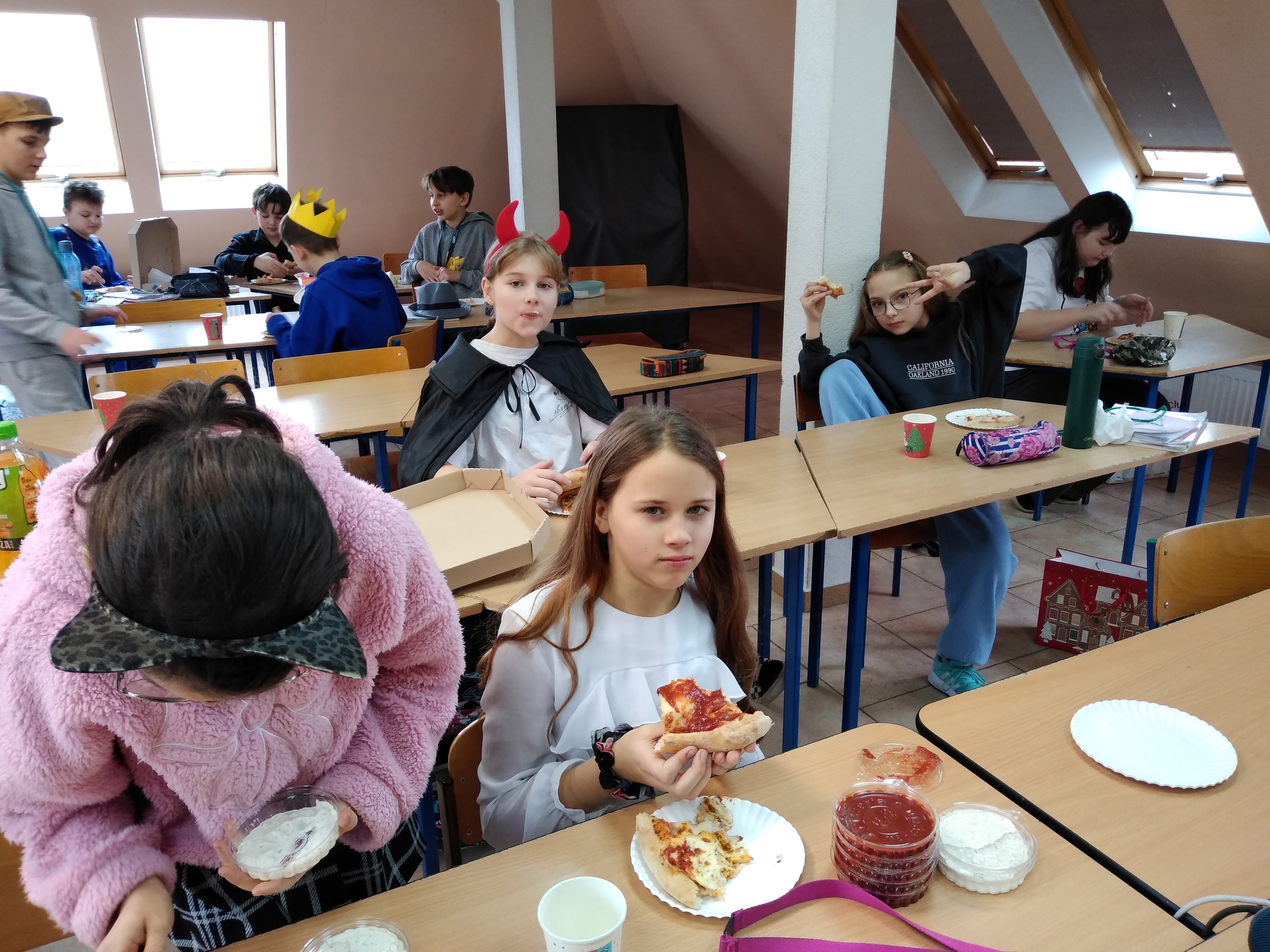 30 stycznia 2026 roku przed rozpoczęciem ferii zimowych uczestniczyliśmy w szkolnym Balu Karnawałowym. Bawiliśmy się w Sali gimnastycznej, a w klasie zjedliśmy pizzę i ciastka.