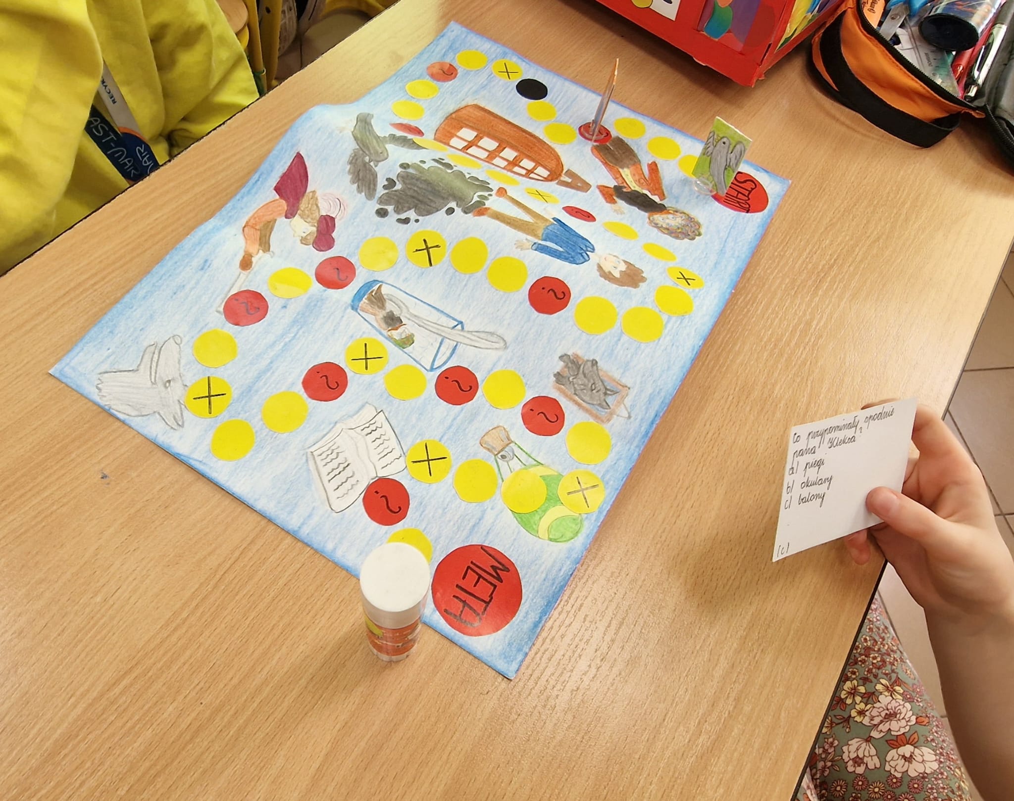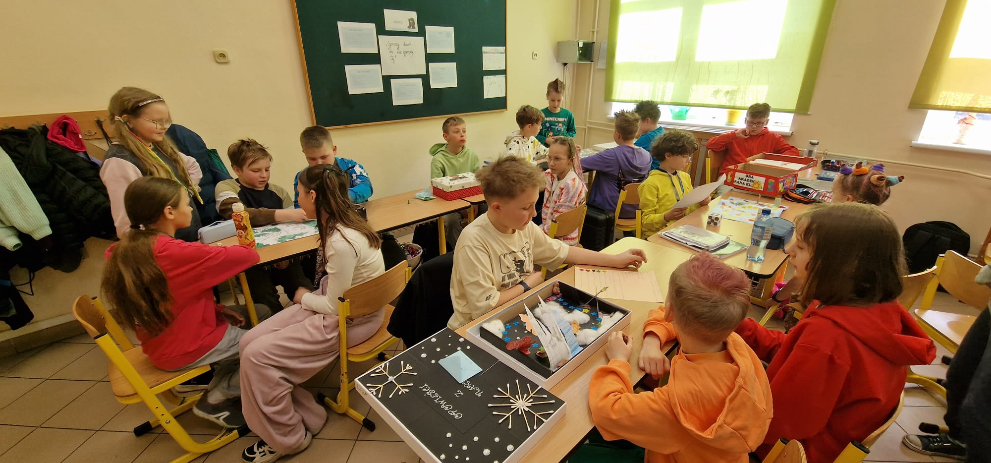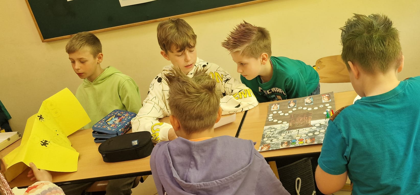 Na lekcji jezyka polskiego uczniowie mieli okazję zagrać w gry planszowe, inspirowane omówioną lekturą "Opowieści z Narnii", które sami wykonywali, wykazując się dużą kreatywnością. Przygotowali instrukcje, plansze, wszystkie potrzebne elementy gier. Najlepszym sposobem na ich sprawdzenie było zagranie w nie. Mieli też możliwość utrwalenia treści "Akademii pana Kleksa", grając w planszówki wykonane przez ich starszych kolegów.