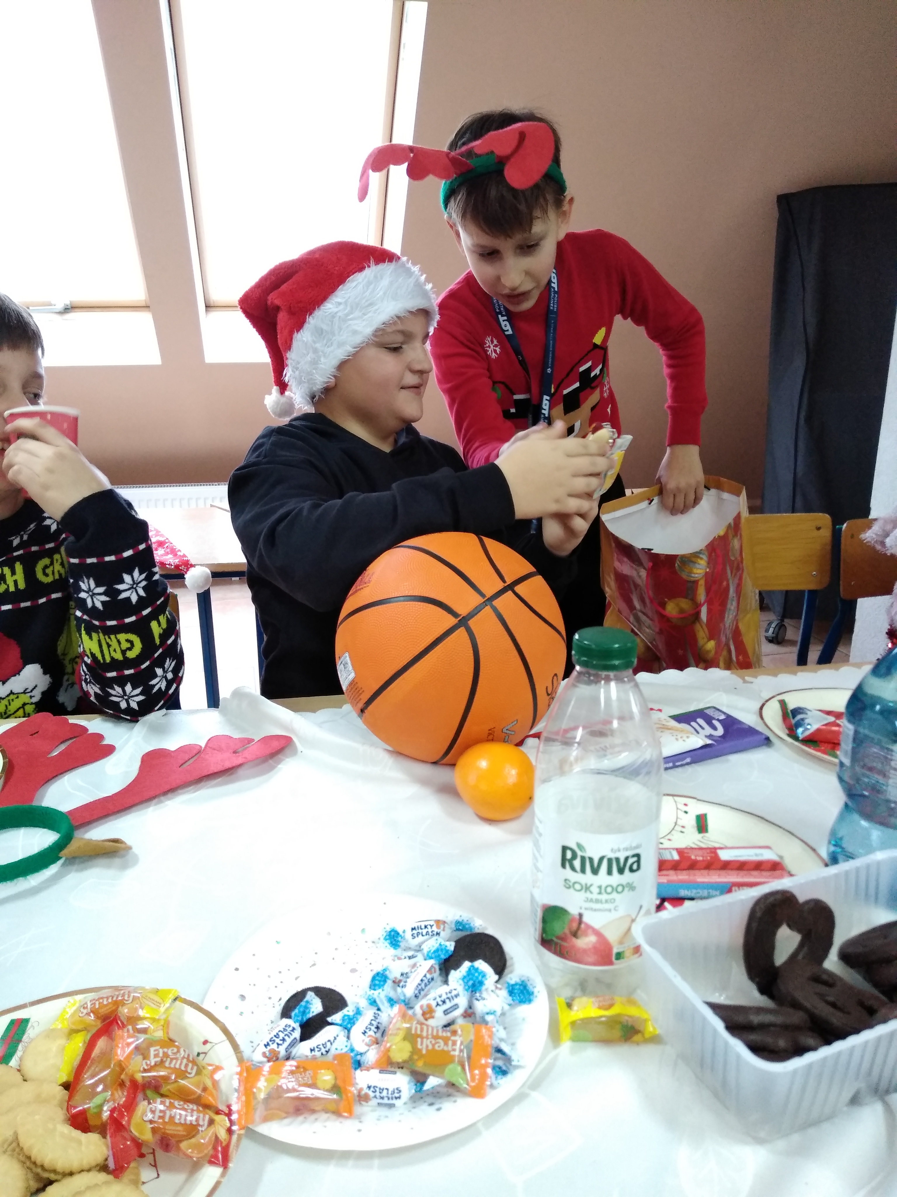 5 grudnia br. w klasie 5 odbyła się klasowa uroczystość z okazji mikołajek. Wcześniej uczniowie ubrali choinkę, a w piątek zasiedli do wspólnego stołu. Zajadając smakołyki wręczali sobie prezenty. Było dużo, dużo radości.