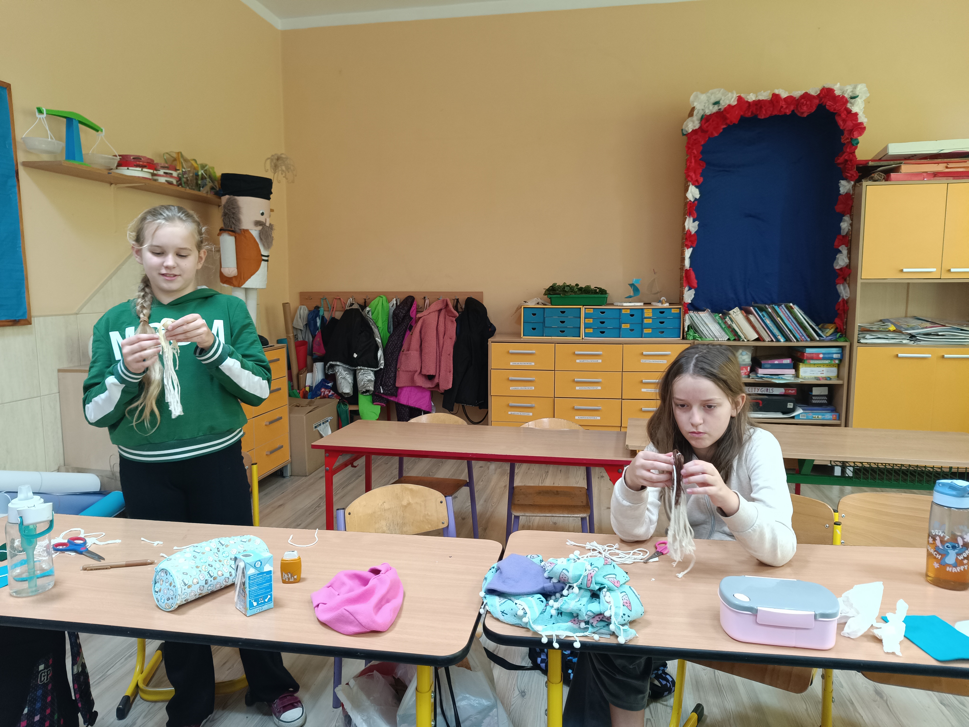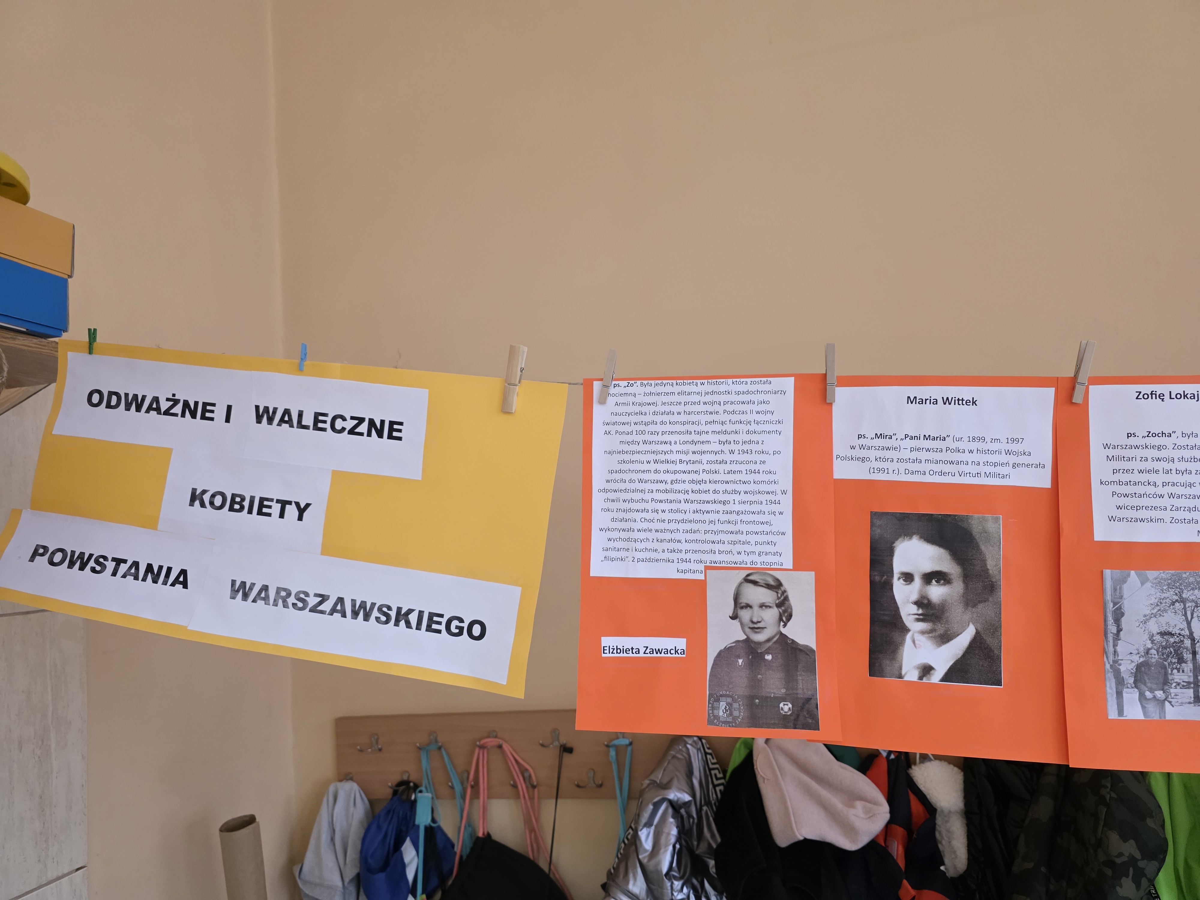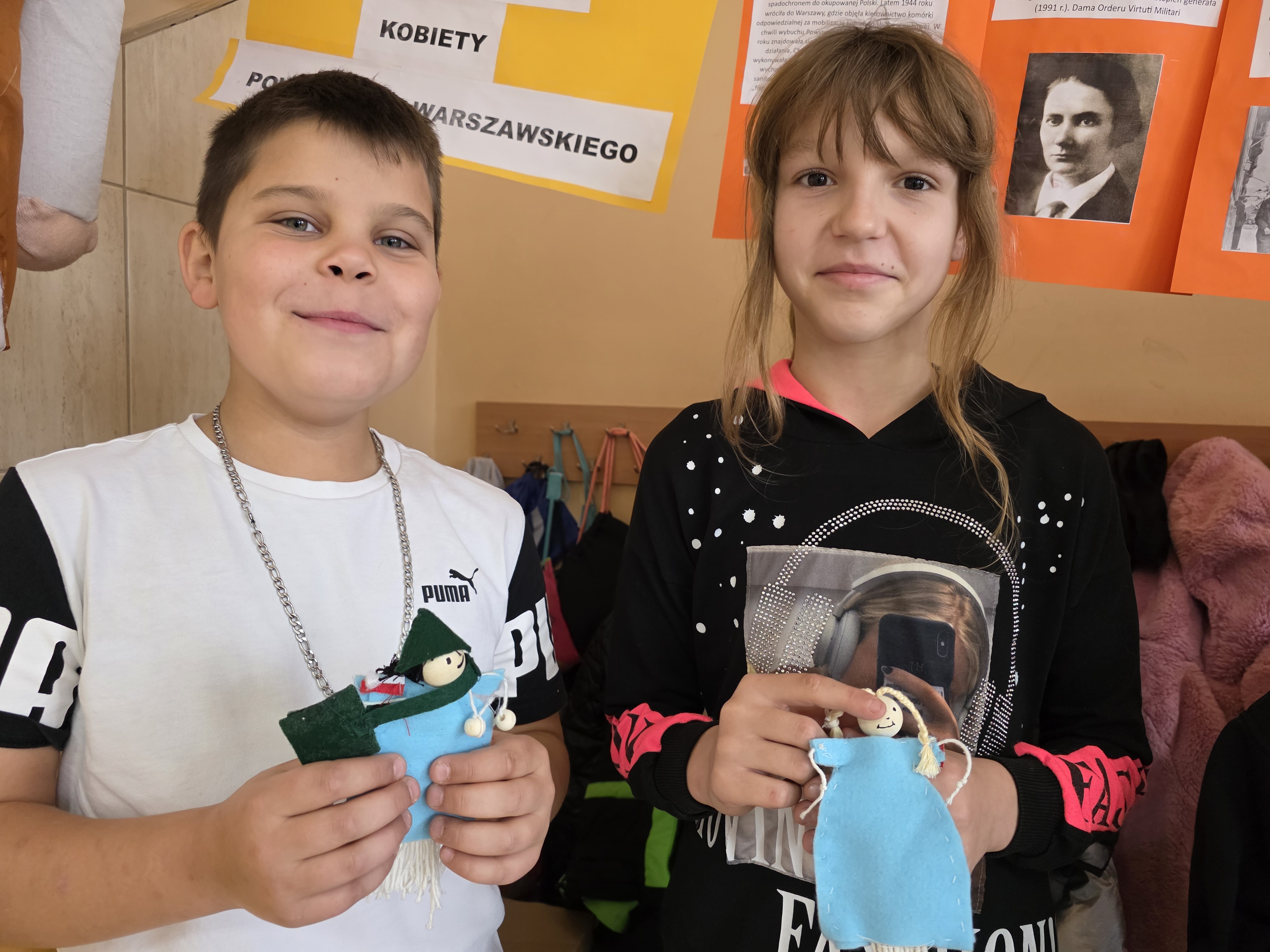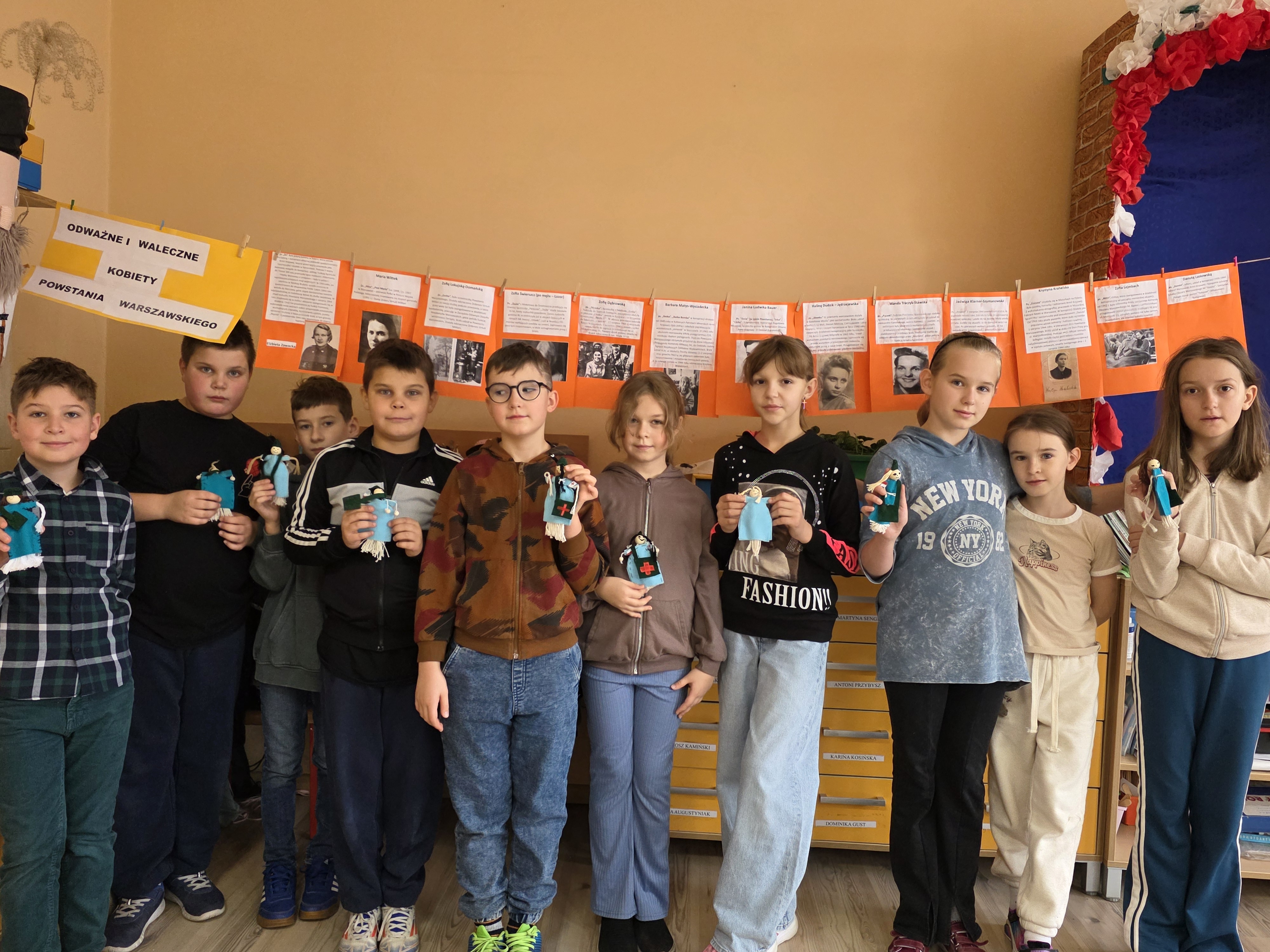Uczniowie obejrzeli materiał wideo pt."Powstańcze dziewczyny - o rolach kobiet w Powstaniu Warszawskim". Poznali funkcje i atrybuty wyglądu sanitariuszek, łączniczek, listonoszek, kucharek, minerek. Rozwiązali karty pracy z wykreślanką, w której musiały odszukać nazwy funkcji, jakie pełniły kobiety w czasie Powstania Warszawskiego. Na koniec uczestniczyli w warsztatach plastycznych " Makramowa Motanka Morowa Panna".