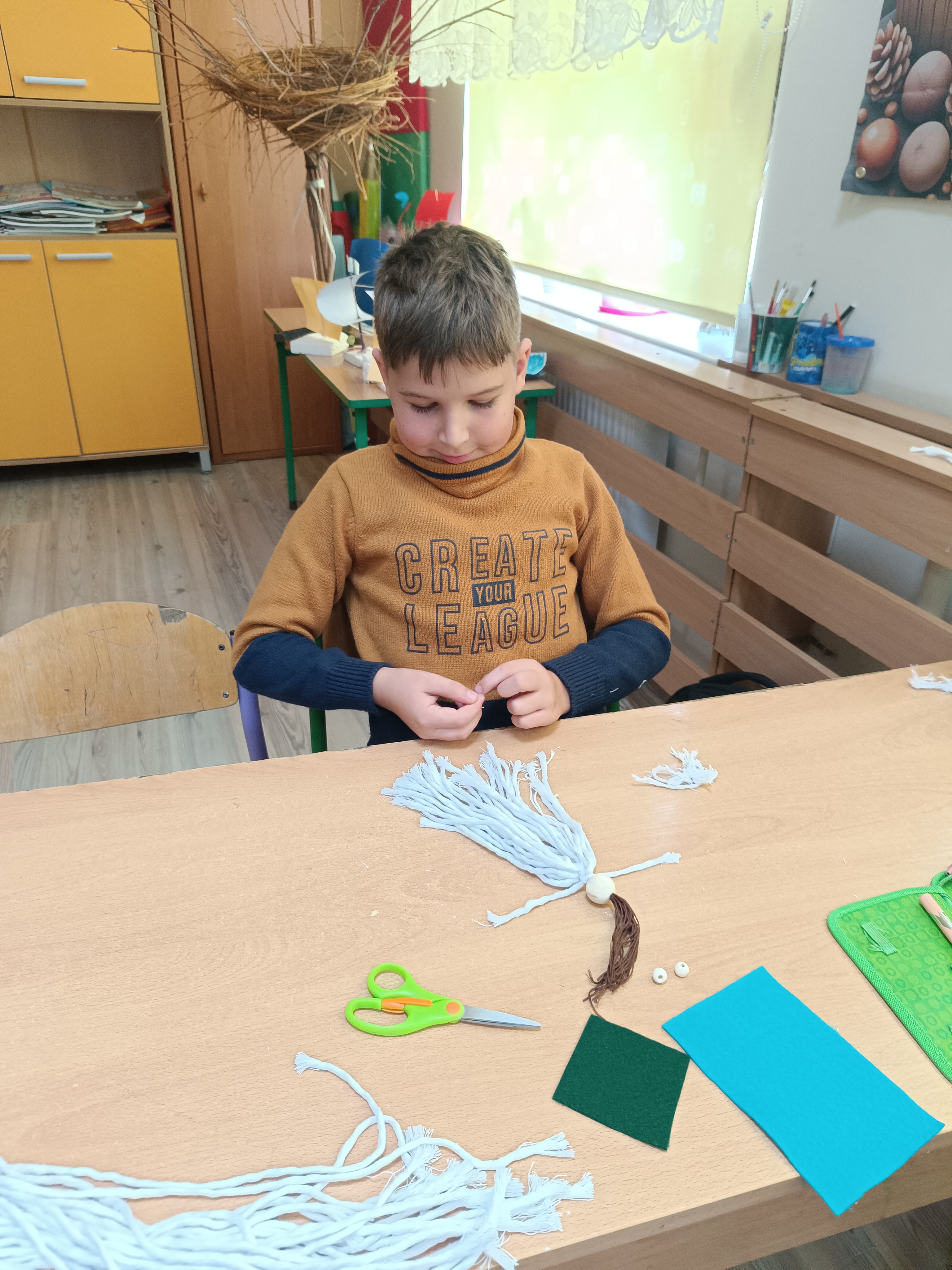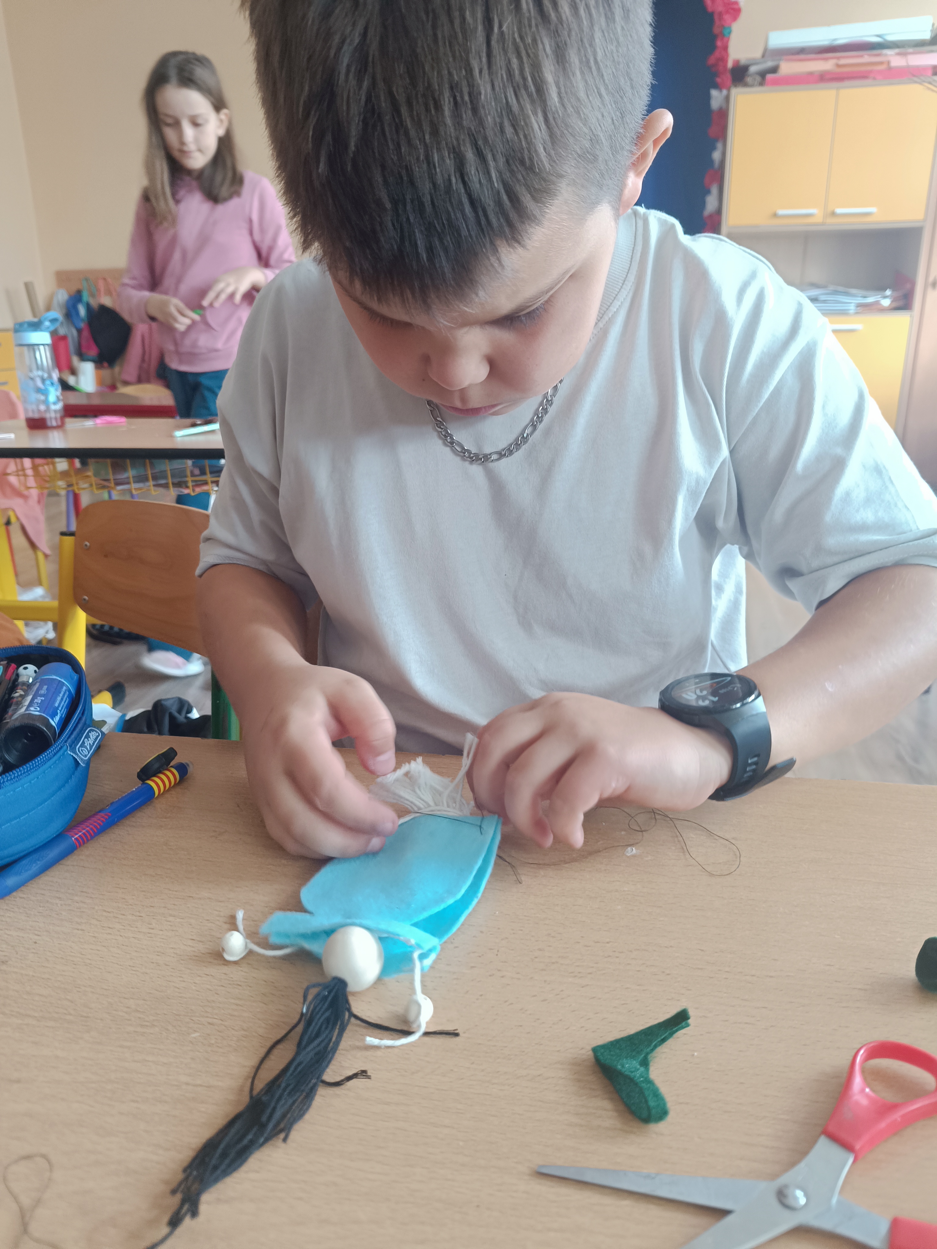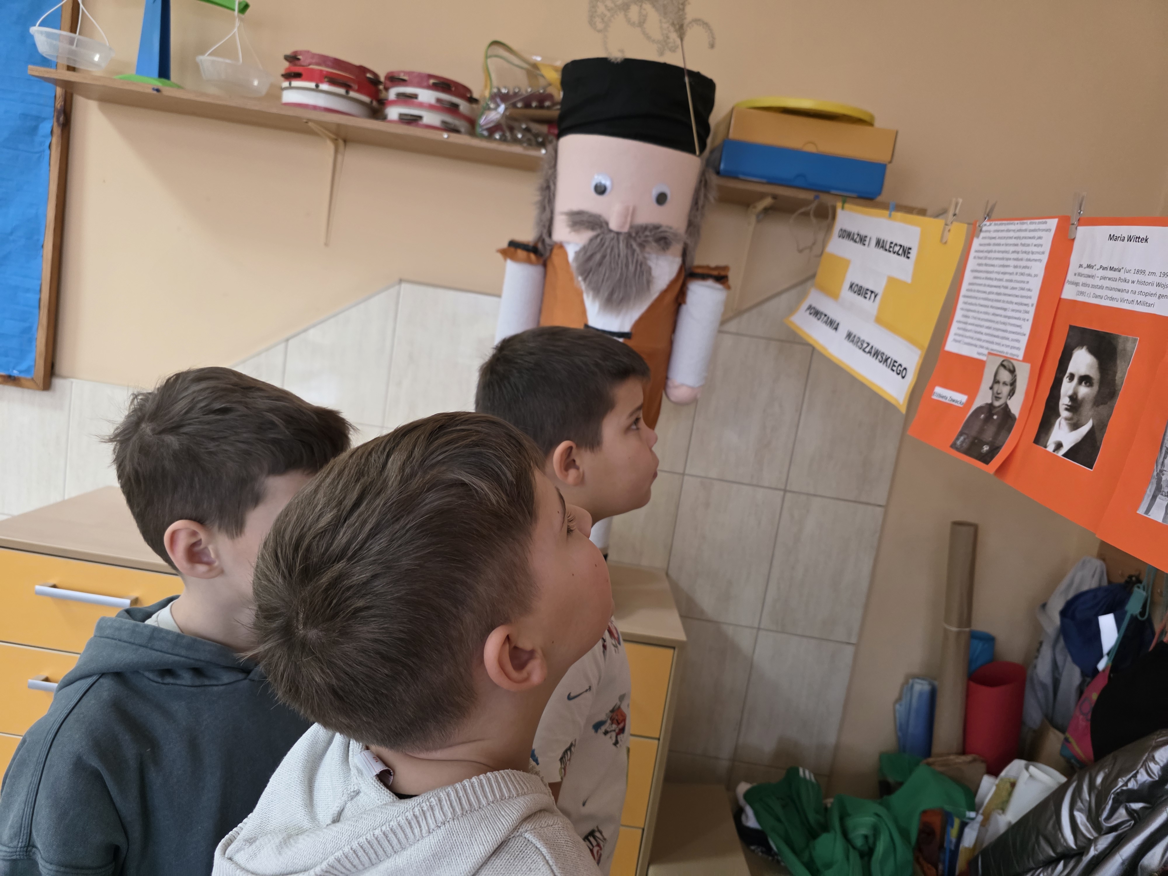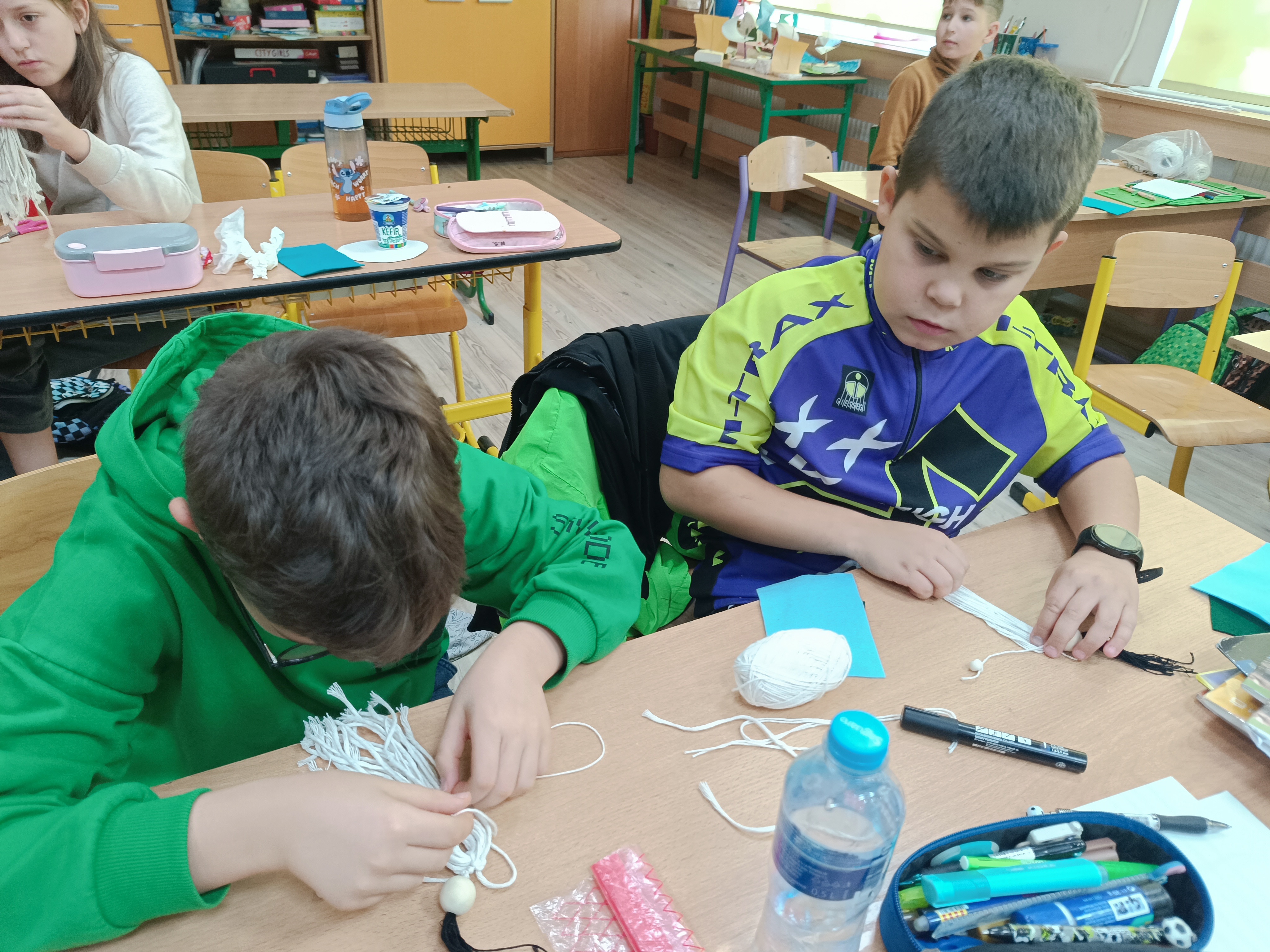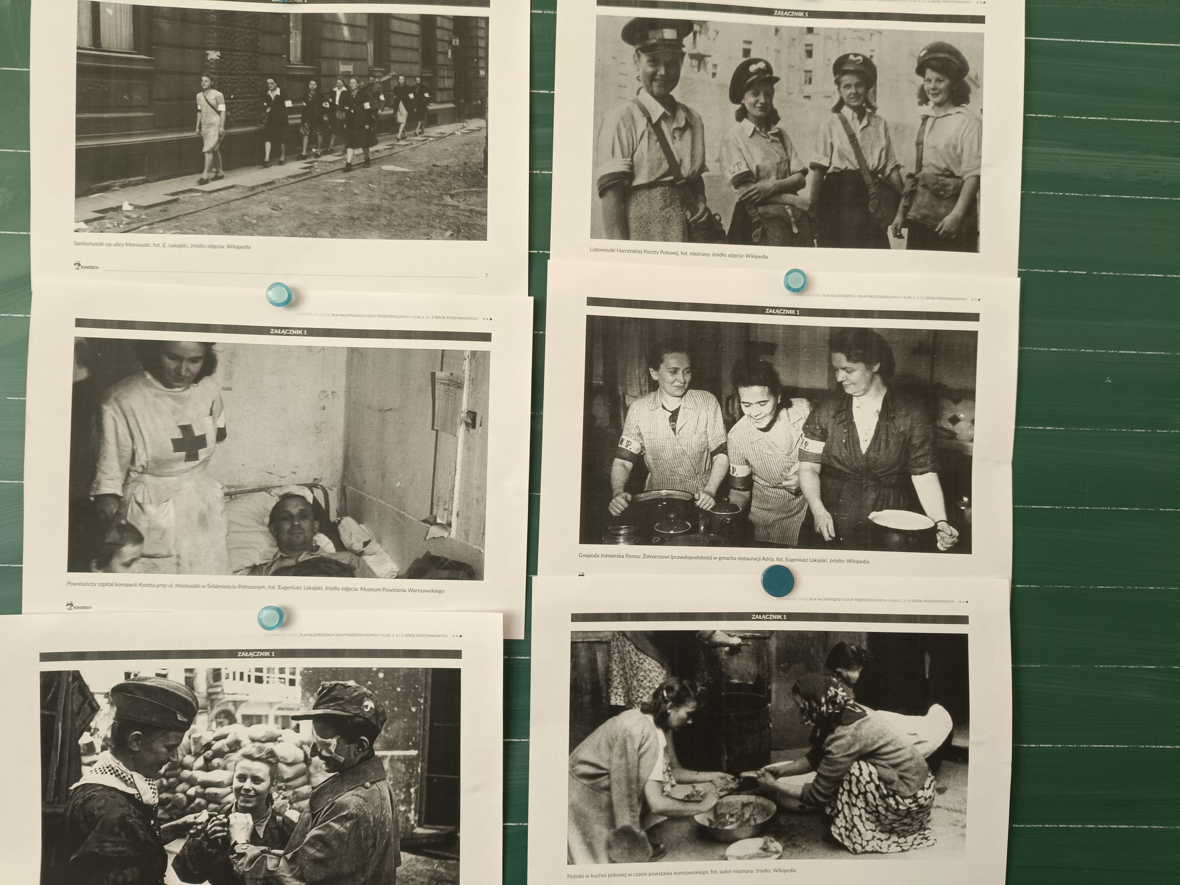 Uczniowie obejrzeli materiał wideo pt."Powstańcze dziewczyny - o rolach kobiet w Powstaniu Warszawskim". Poznali funkcje i atrybuty wyglądu sanitariuszek, łączniczek, listonoszek, kucharek, minerek. Rozwiązali karty pracy z wykreślanką, w której musiały odszukać nazwy funkcji, jakie pełniły kobiety w czasie Powstania Warszawskiego. Na koniec uczestniczyli w warsztatach plastycznych " Makramowa Motanka Morowa Panna".