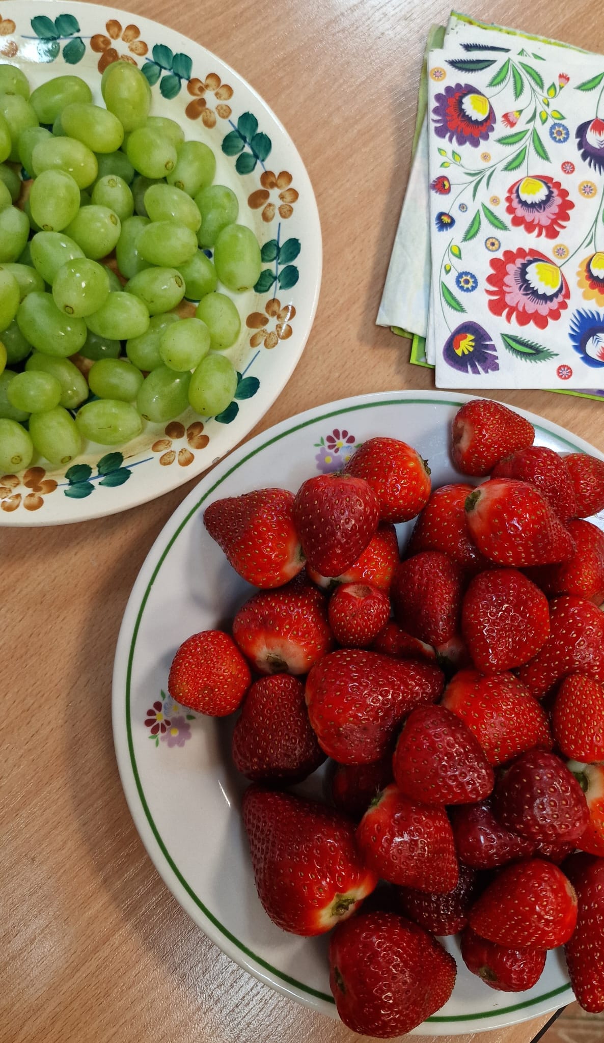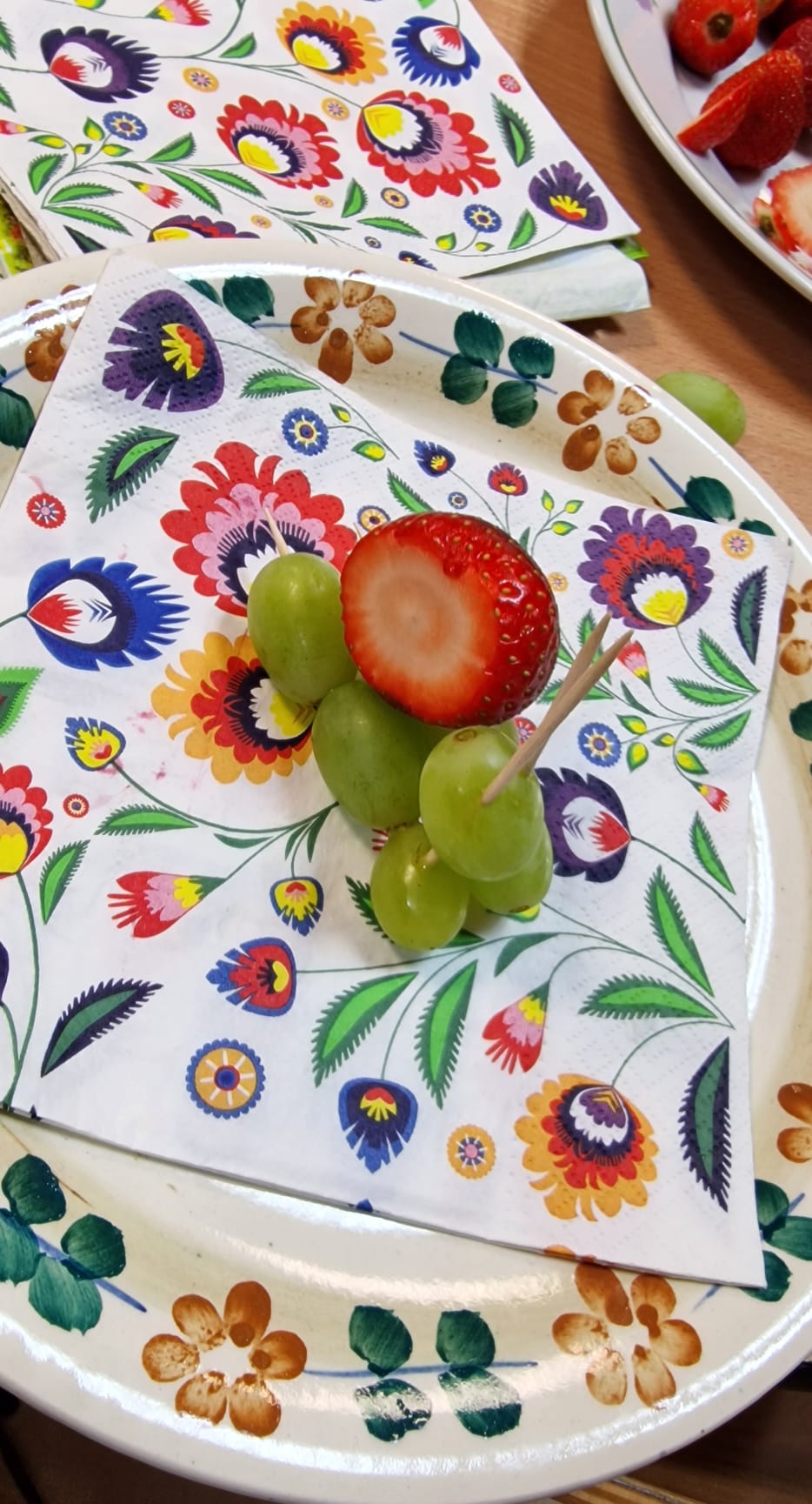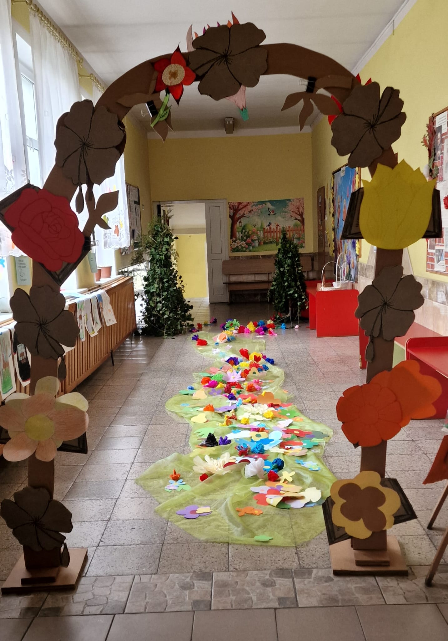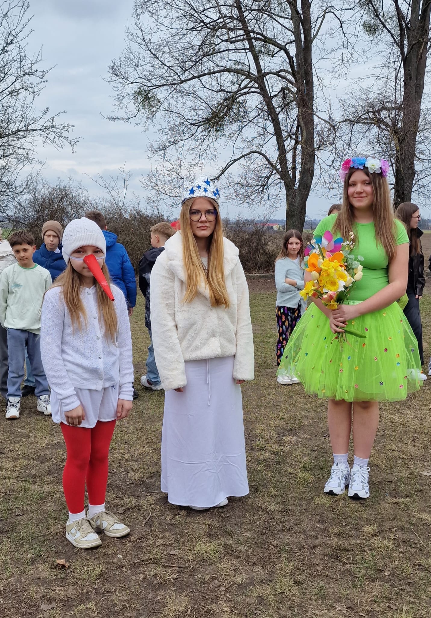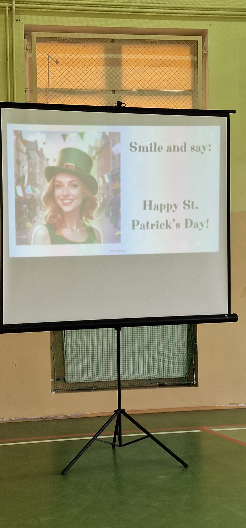 Piątek 20. marca nie był codziennym dniem - tego dnia wszyscy zaangażowaliśmy się w obchody Dnia Wiosny połączone z obchodami Dnia Świętego Patryka, tradycyjne zajęcia zamieniając na przygotowanie owocowych przekąsek - ślimaków, zielonych galaretek, starej bramy, która stanowiła element wystroju korytarza, a Ala odegrała rolę Pani Zimy, którą wszyscy żegnaliśmy, gdy do szkoły przybyła Pani Wiosna. Uczyliśmy się też tańca irlandzkiego, a na boisku uczestniczyliśmy w zabawach ruchowych. To był intensywny dzień, pełen różnych aktywności.