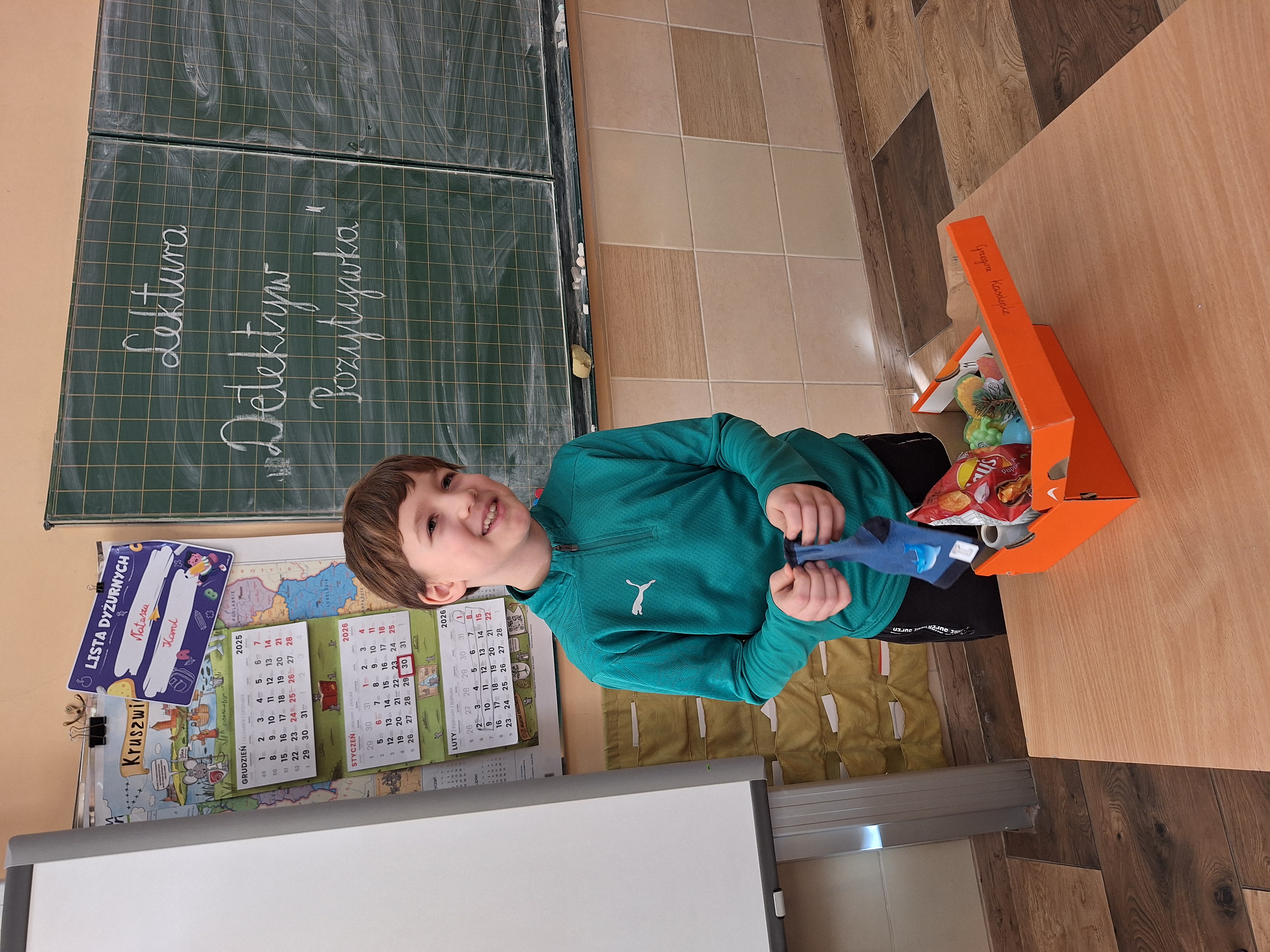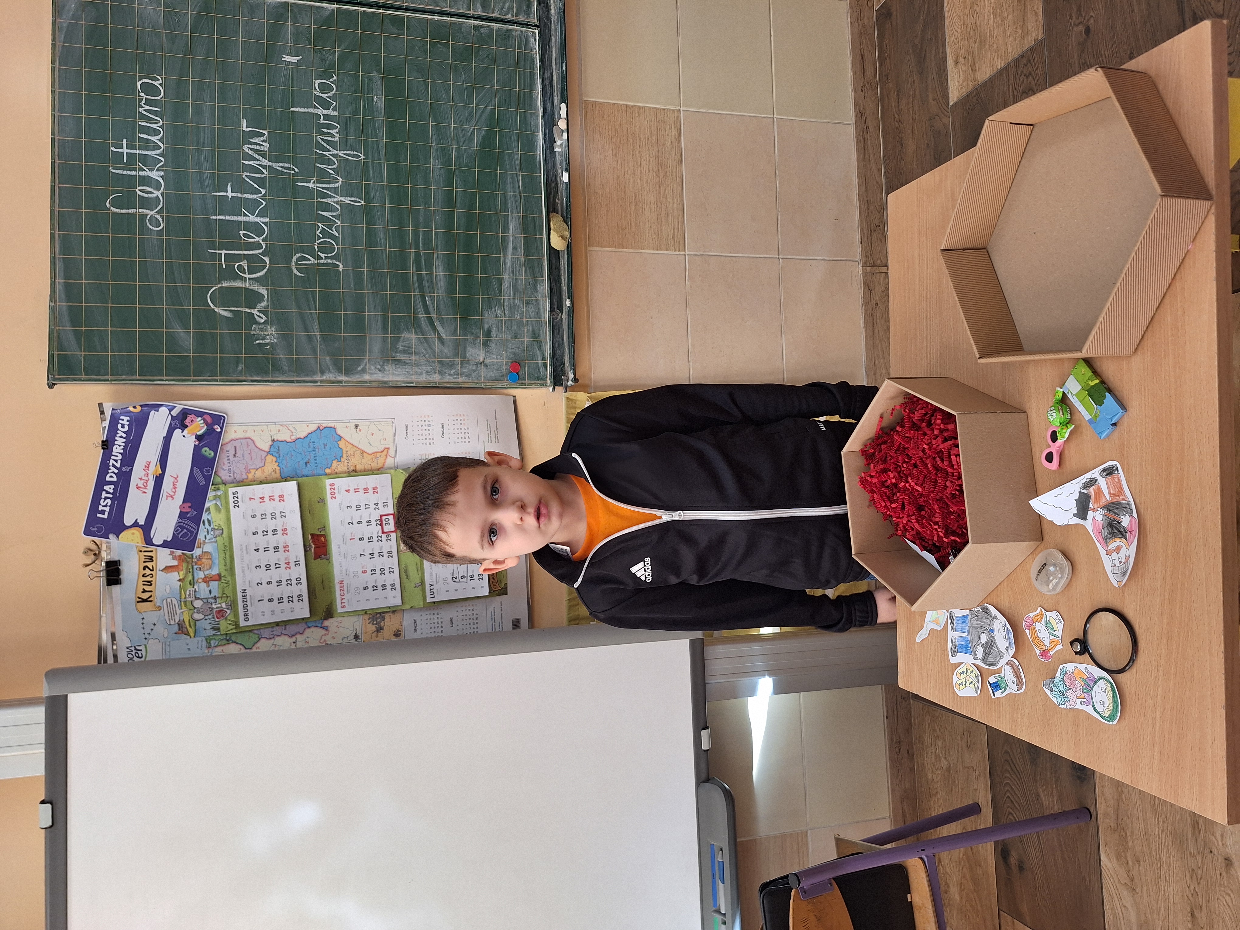 Prezentacja pudełek lekturowych do lektury pt.'' Detektyw Pozytywka''.