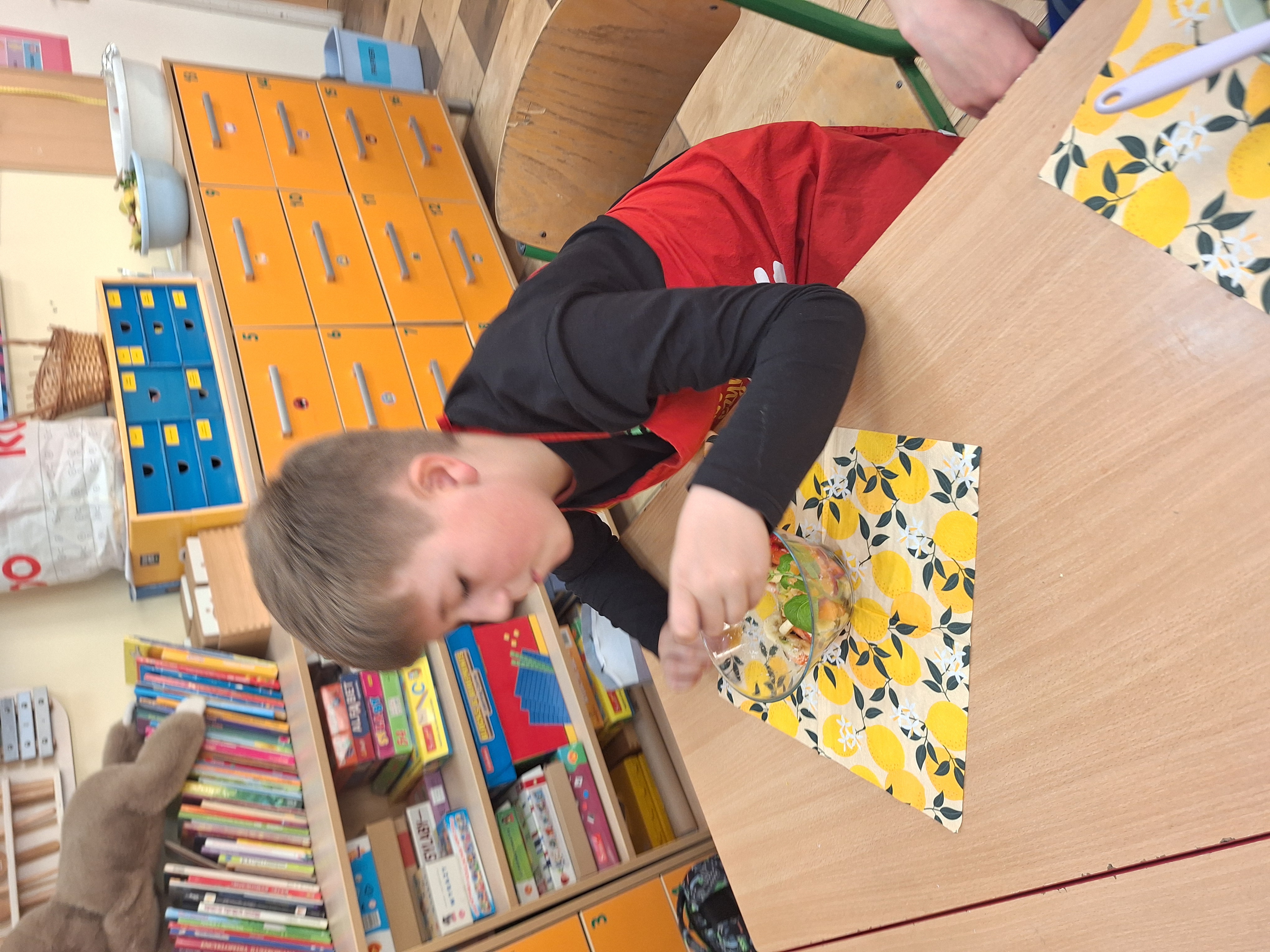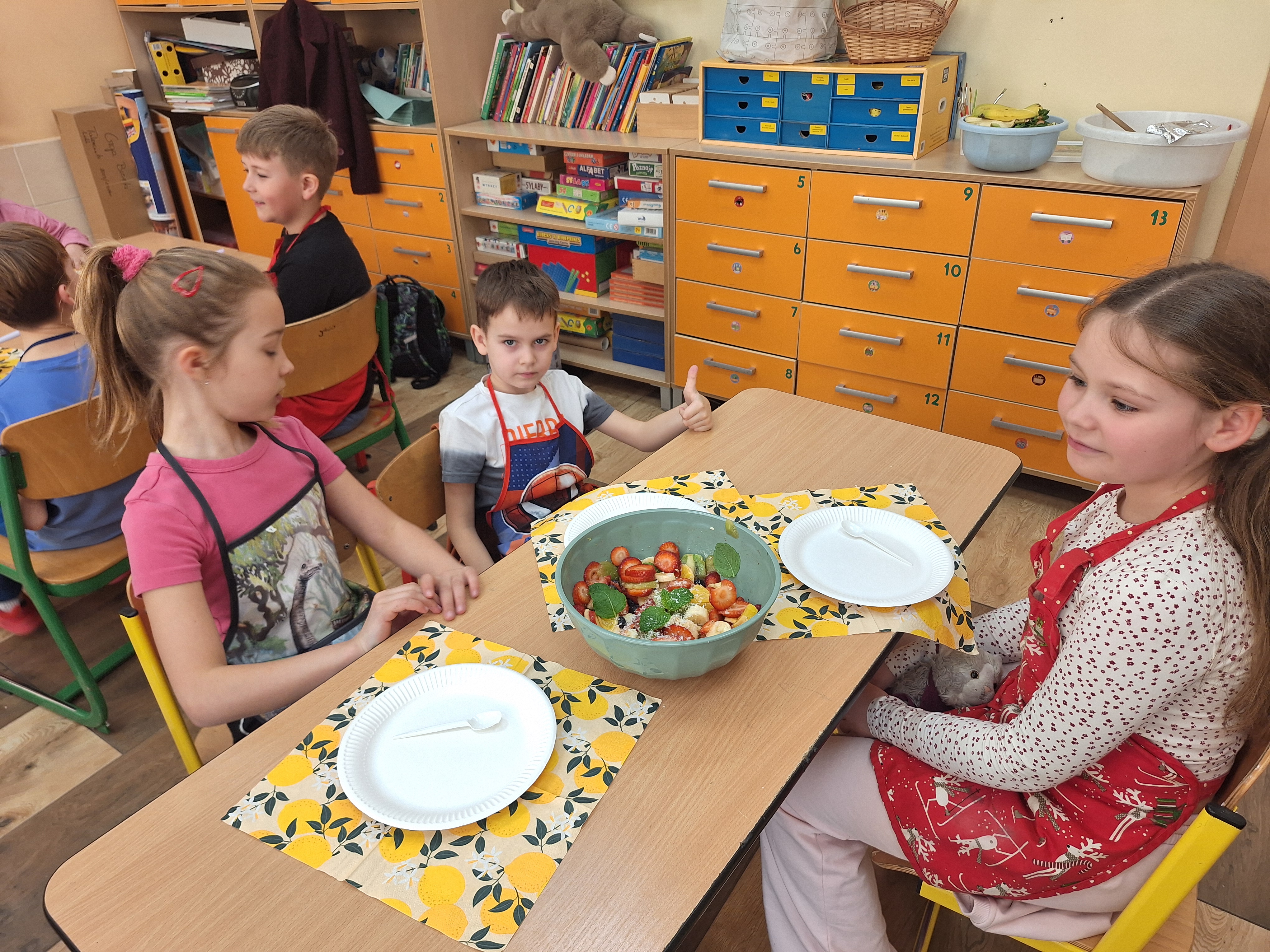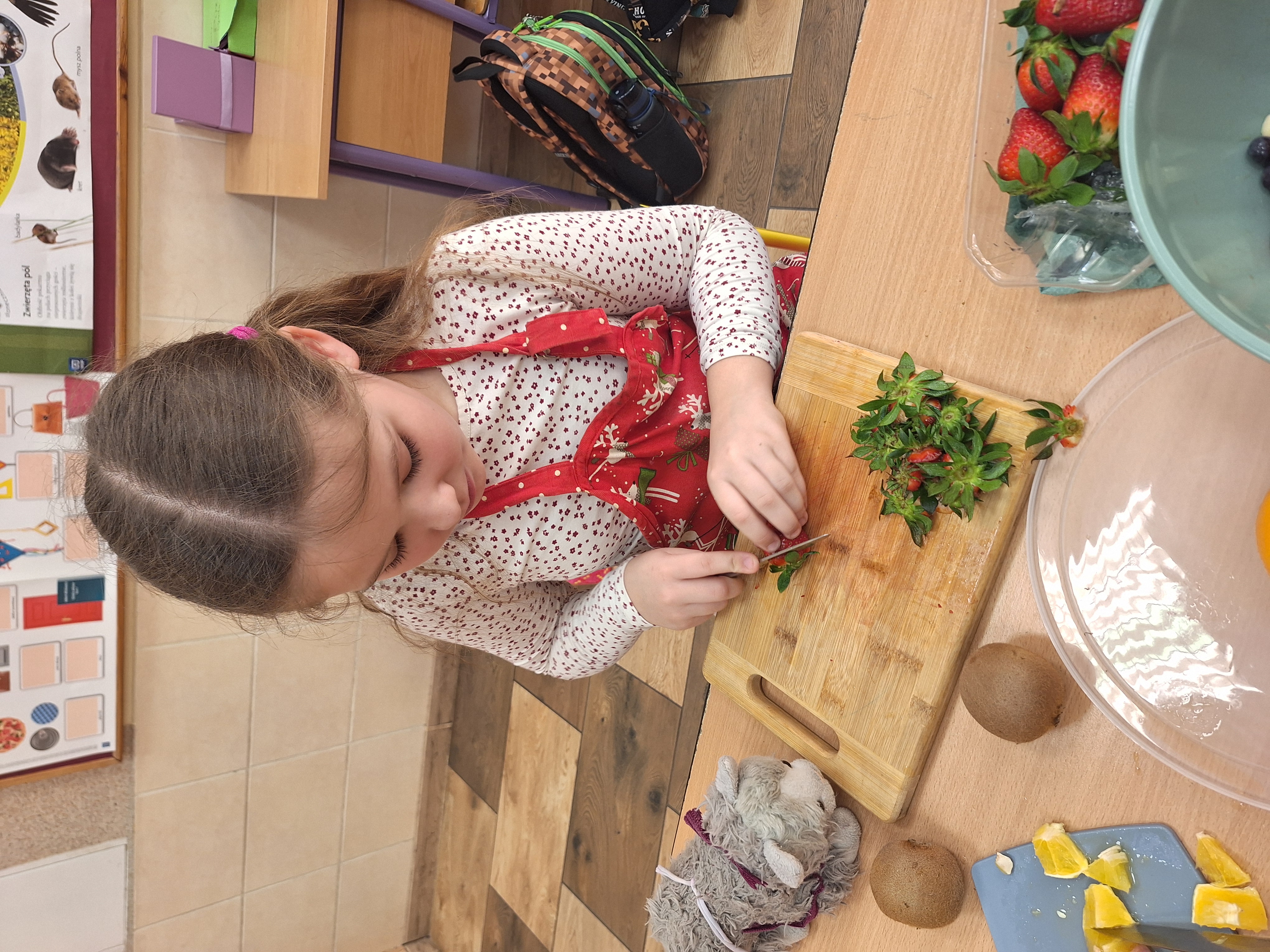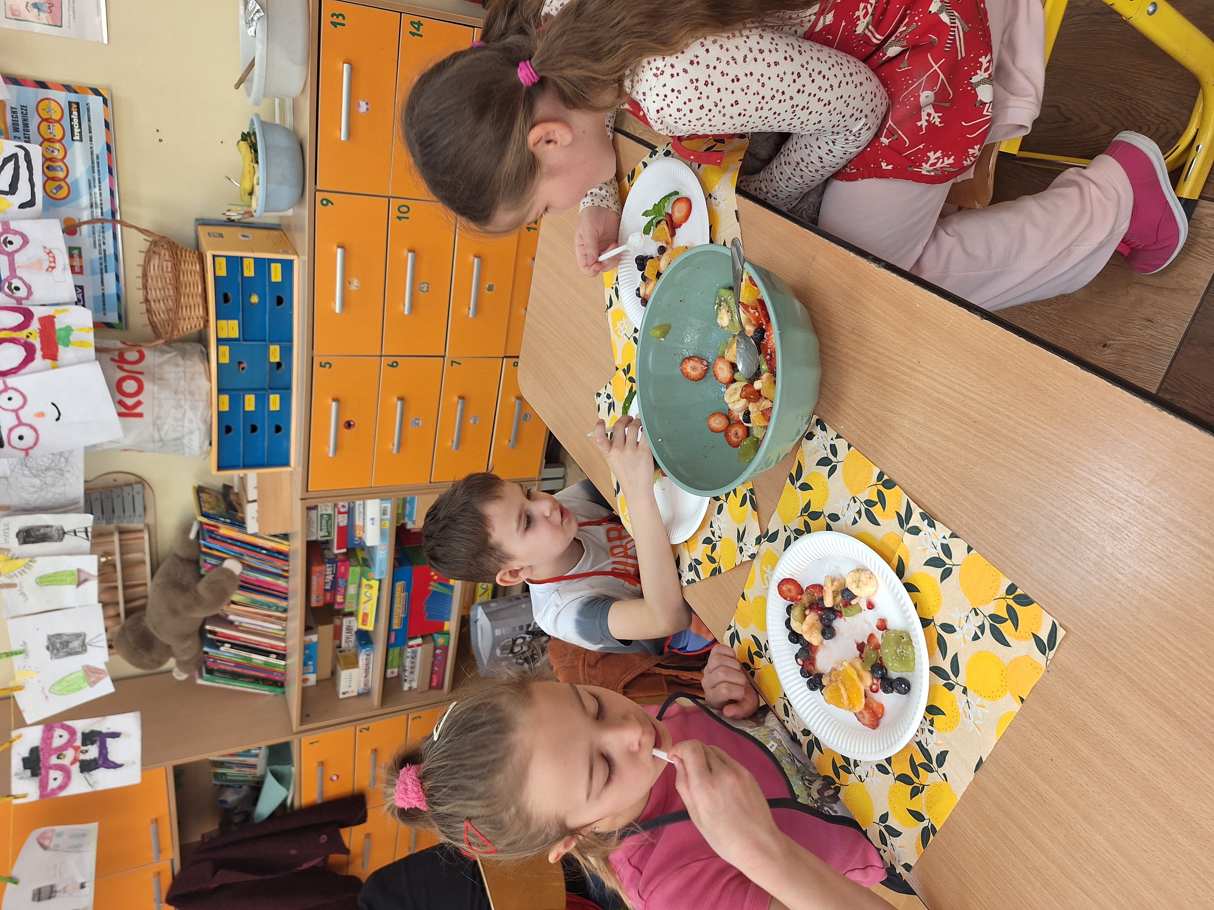 Ta praktyczna lekcja nie tylko nauczyła dzieci podstaw zdrowego odżywiania, ale również rozwinęła ich umiejętności manualne i współpracę w grupie. Wspólne przygotowywanie posiłków jest świetnym sposobem na zachęcenie najmłodszych do sięgania po zdrowe produkty zamiast słodyczy czy przekąsek wysokoprzetworzonych.