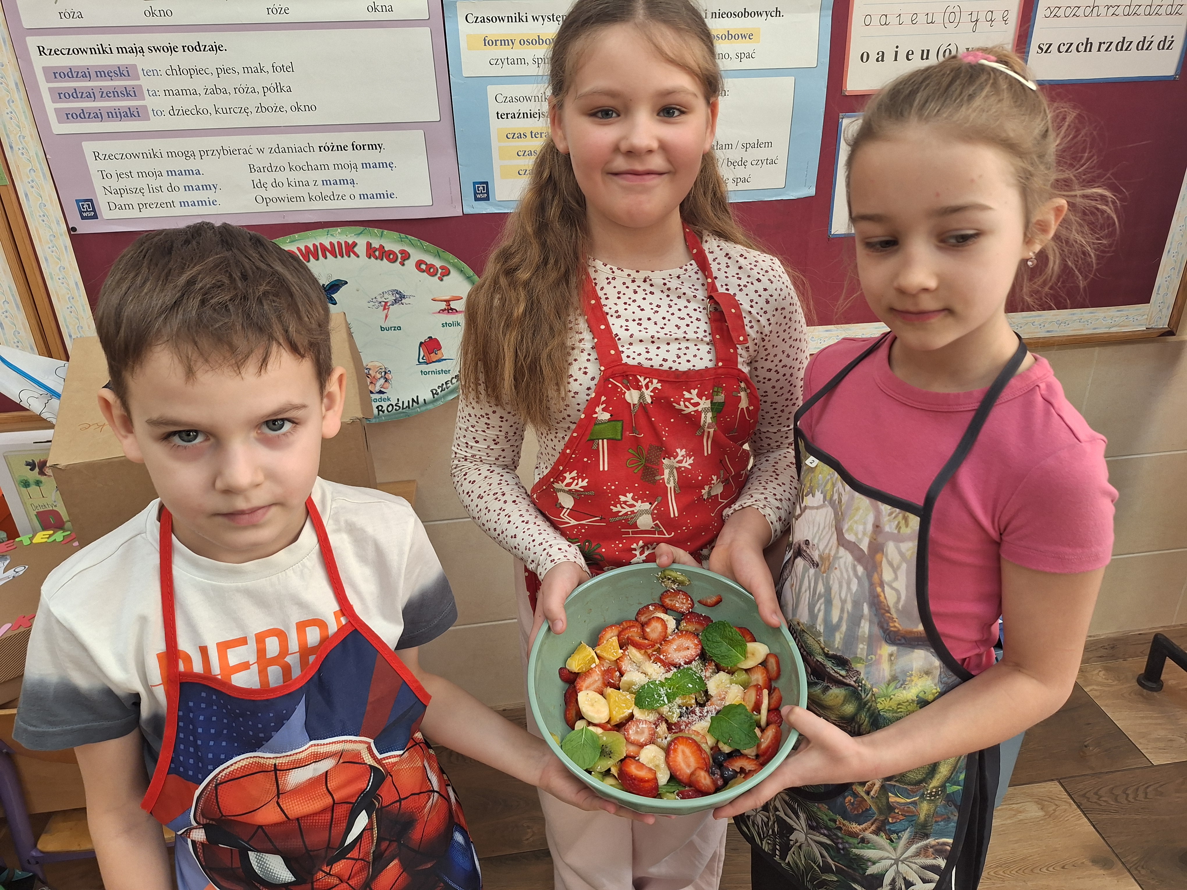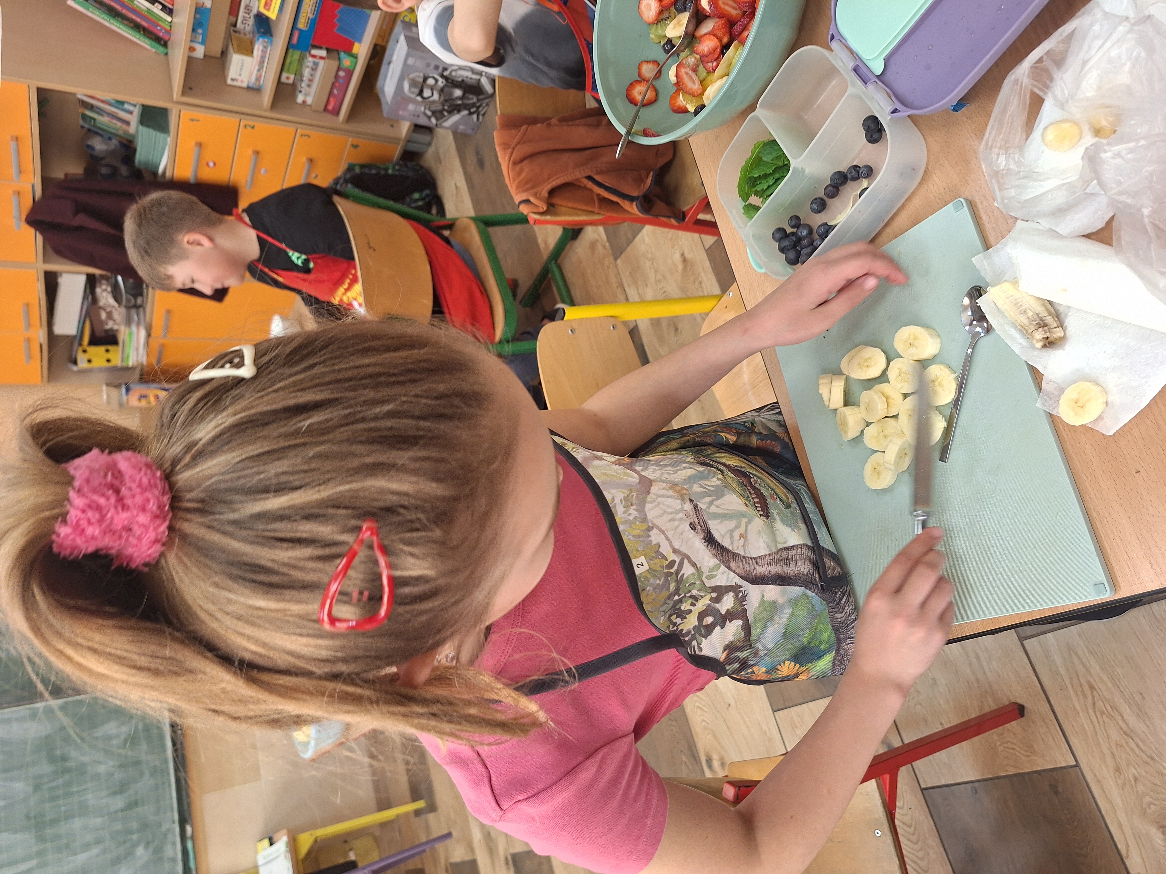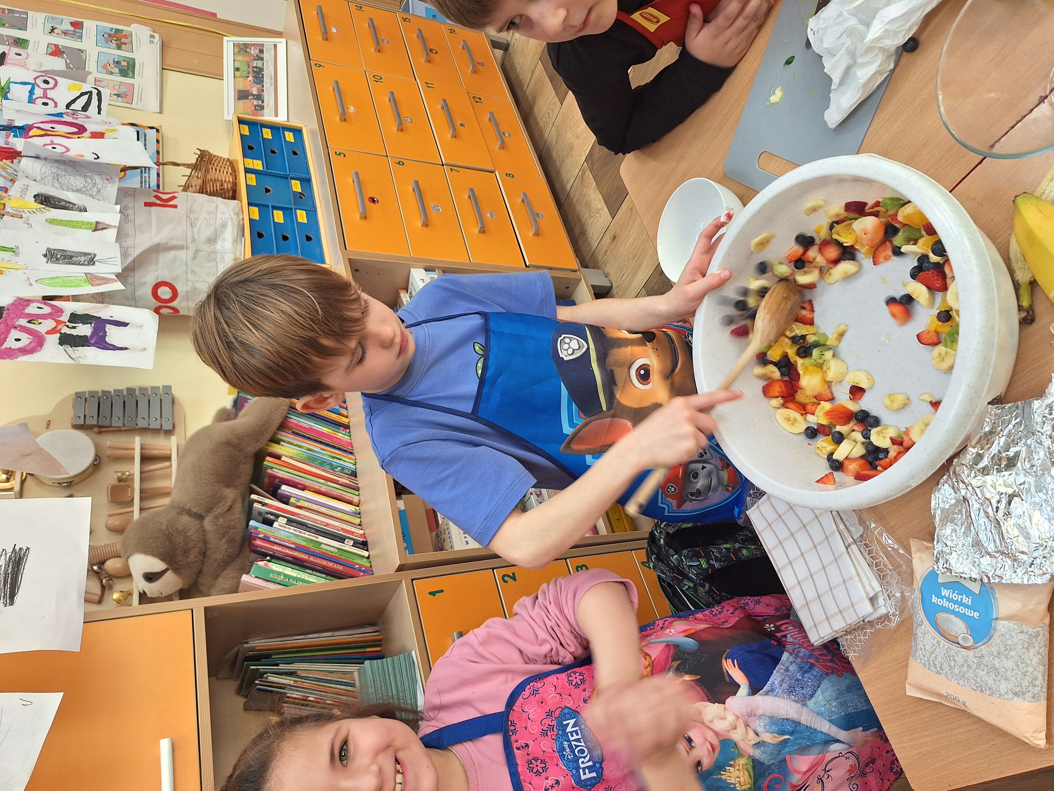 Zdrowe odżywianie to podstawa prawidłowego rozwoju każdego dziecka. Już od najmłodszych lat warto uczyć dzieci, jak ważne są witaminy i składniki odżywcze zawarte w świeżych produktach. Jednym z najlepszych sposobów na wprowadzenie zdrowych nawyków jest praktyczne działanie, dlatego uczniowie klasy 2 postanowili przygotować pyszną i kolorową sałatkę owocową. To nie tylko świetna zabawa, ale i doskonała lekcja o wartości jedzenia.