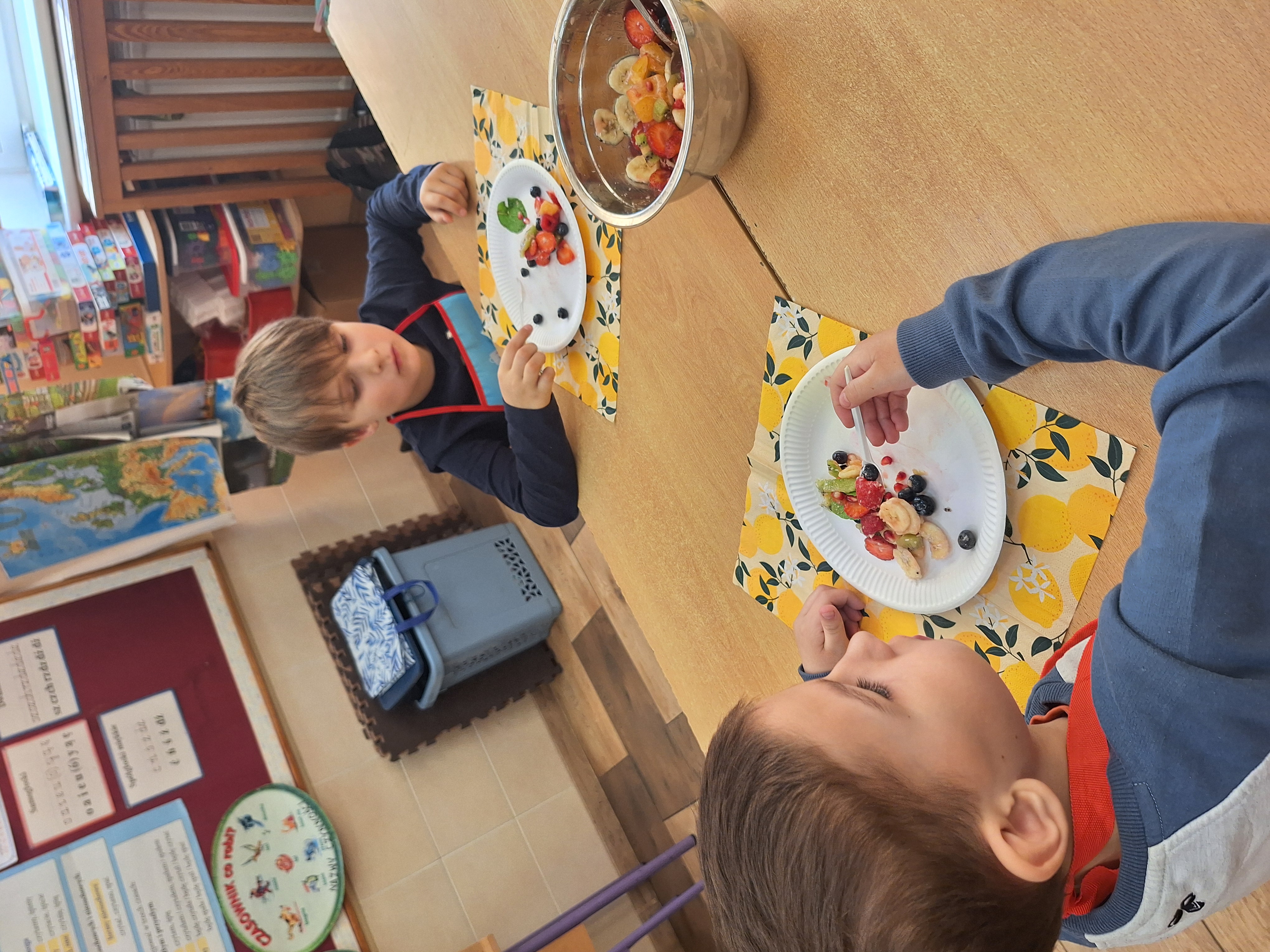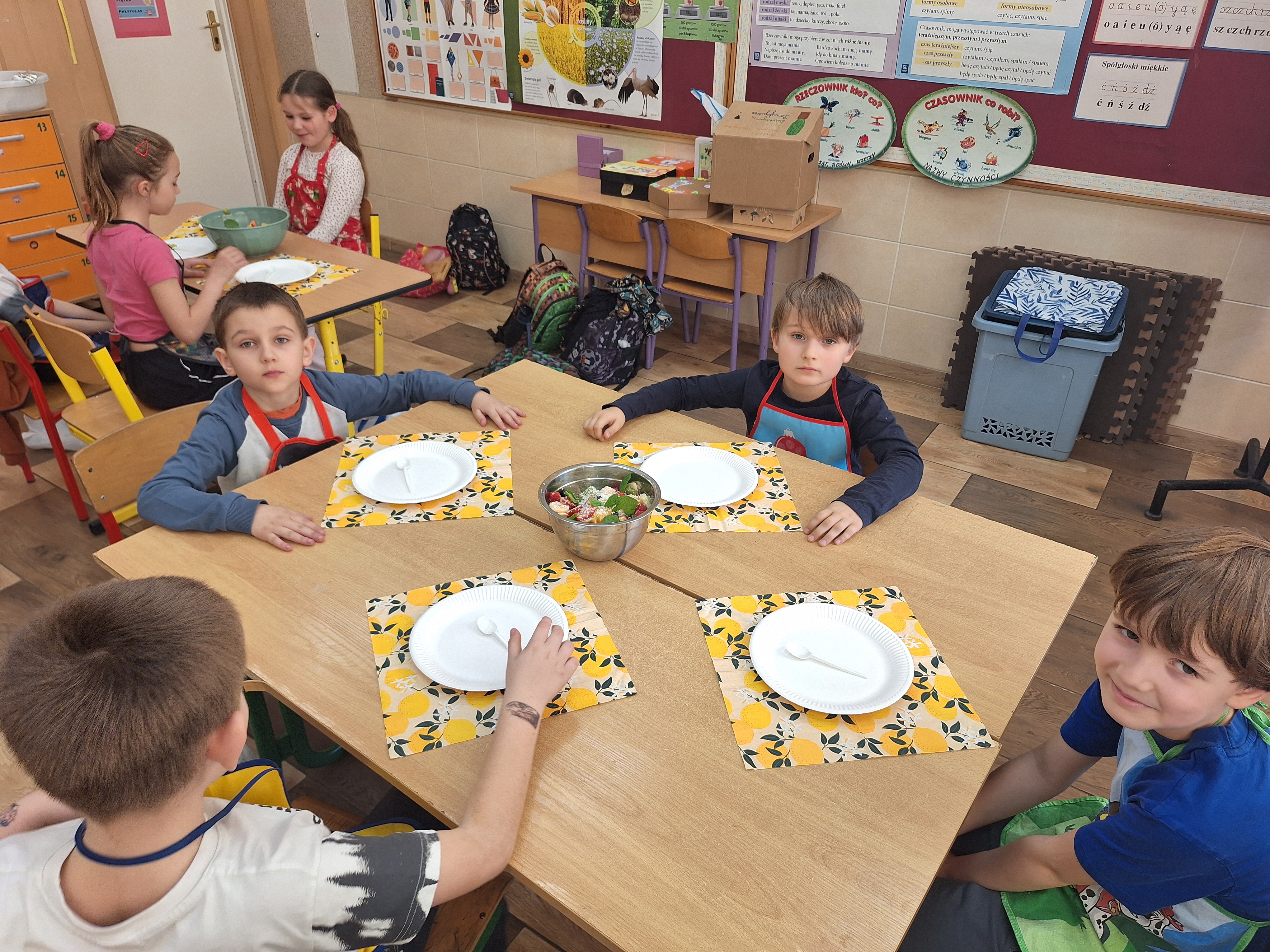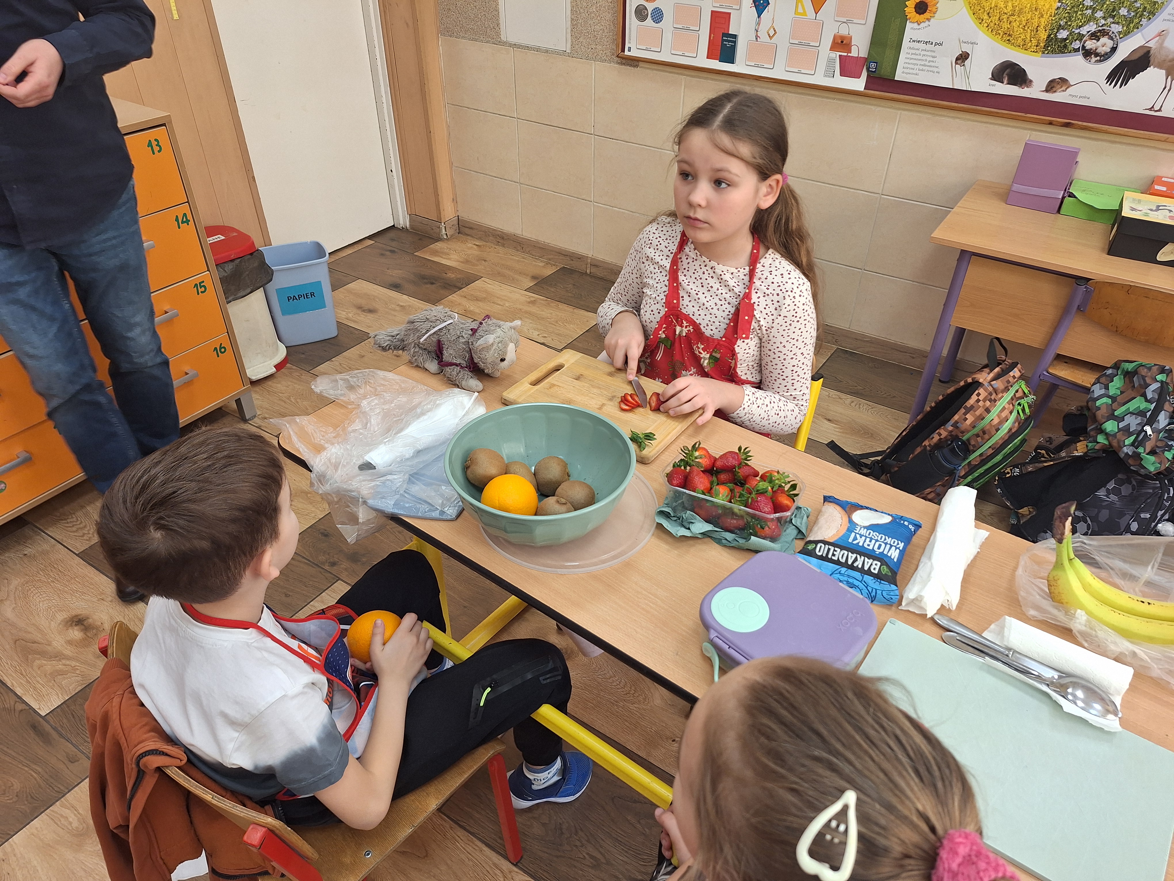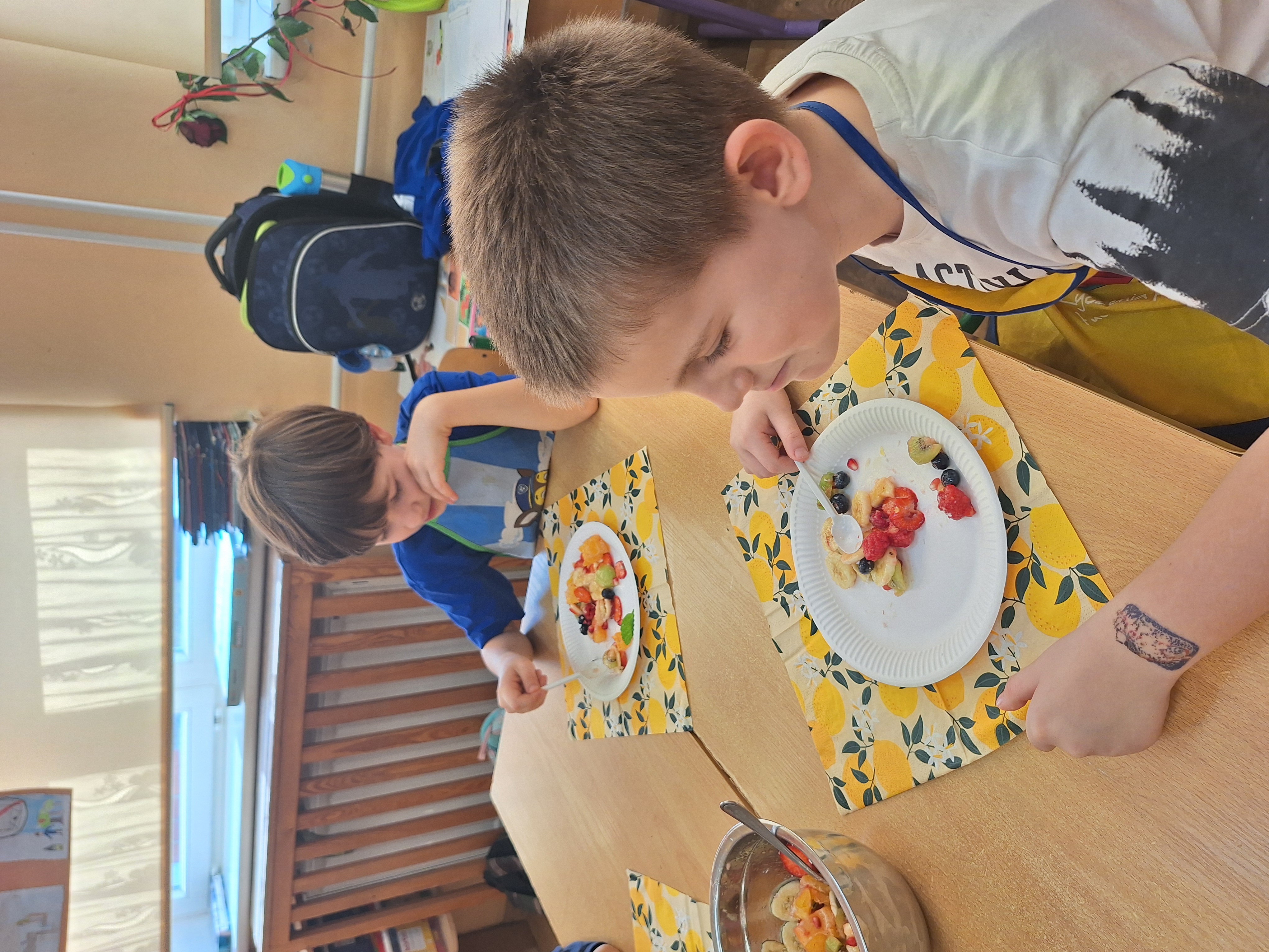 Zdrowe odżywianie to podstawa prawidłowego rozwoju każdego dziecka. Już od najmłodszych lat warto uczyć dzieci, jak ważne są witaminy i składniki odżywcze zawarte w świeżych produktach. Jednym z najlepszych sposobów na wprowadzenie zdrowych nawyków jest praktyczne działanie, dlatego uczniowie klasy 2 postanowili przygotować pyszną i kolorową sałatkę owocową. To nie tylko świetna zabawa, ale i doskonała lekcja o wartości jedzenia.