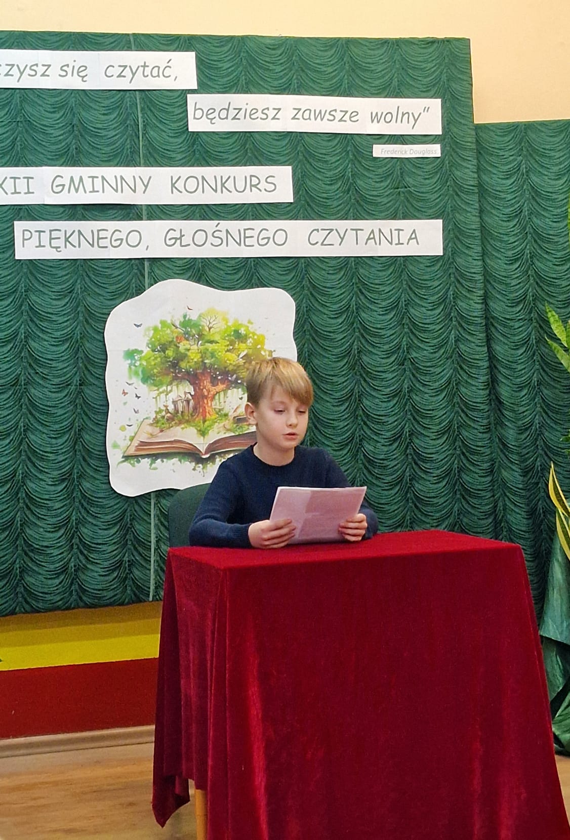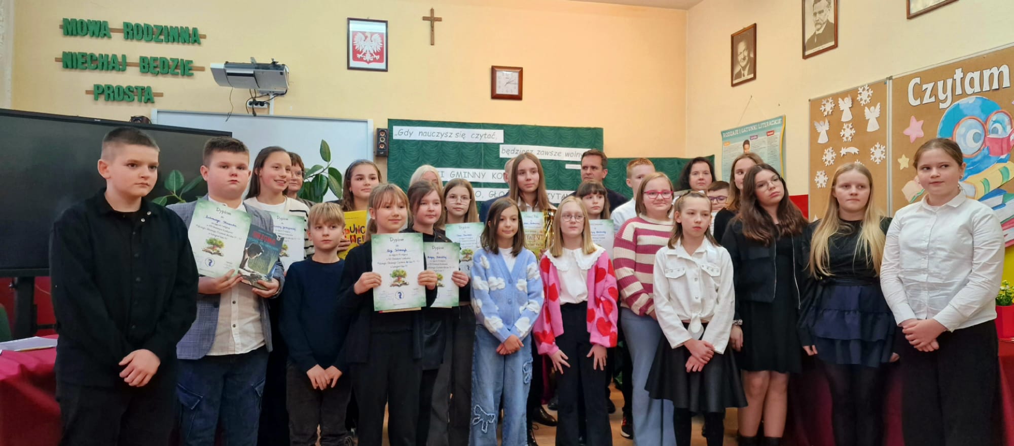 W mroźne sobotnie przedpołudnie 17. stycznia 2026 w SP im. Janusza Kusocińskiego w Polanowicach odbyła się kolejna edycja Gminnego Konkursu Pięknego, Głośnego Czytania dla uczniów klas IV-VI. Naszą szkołę reprezentowali Bartosz Skonieczka oraz Oliwia Skonieczka, którzy wykazali się wysokim poziomem umiejętności czytelniczych. Miło nam poinformować, że w kategorii uczniów klas VI na podium znalazła się Oliwia, zajmując II miejsce – gratulujemy Oliwii. Uczniów do konkursu przygotowała polonistka, Weronika Dordzik-Walkowiak.