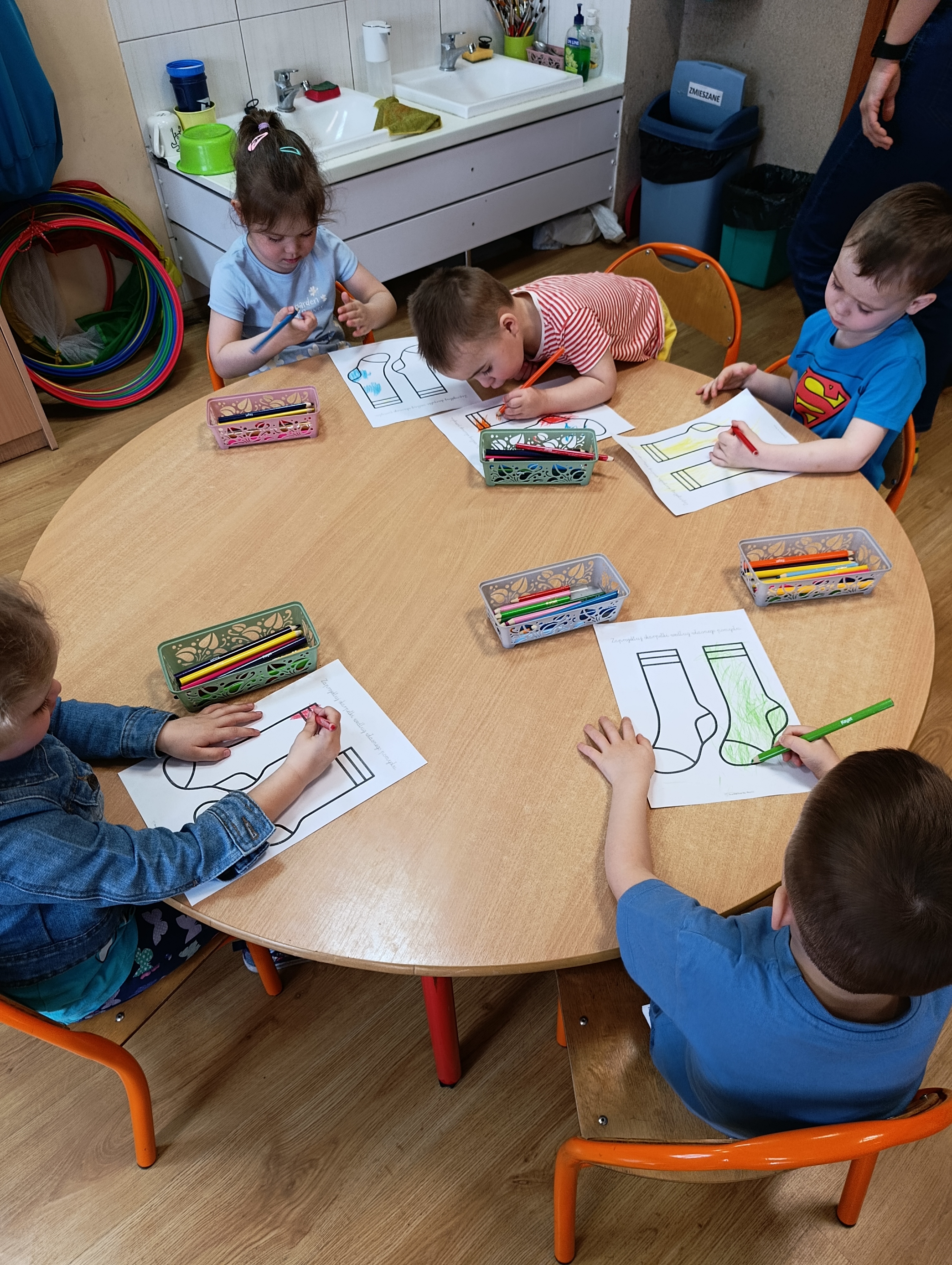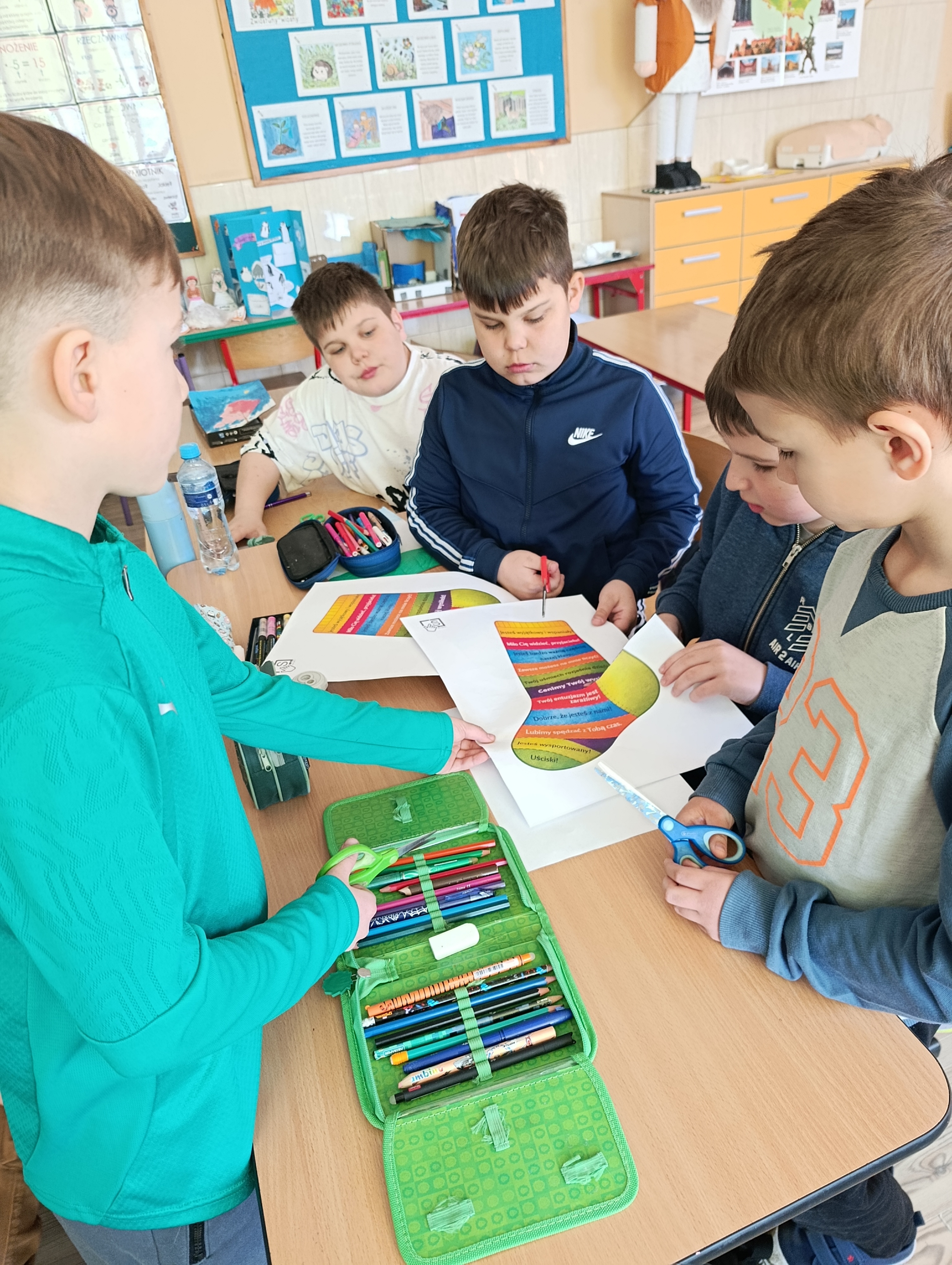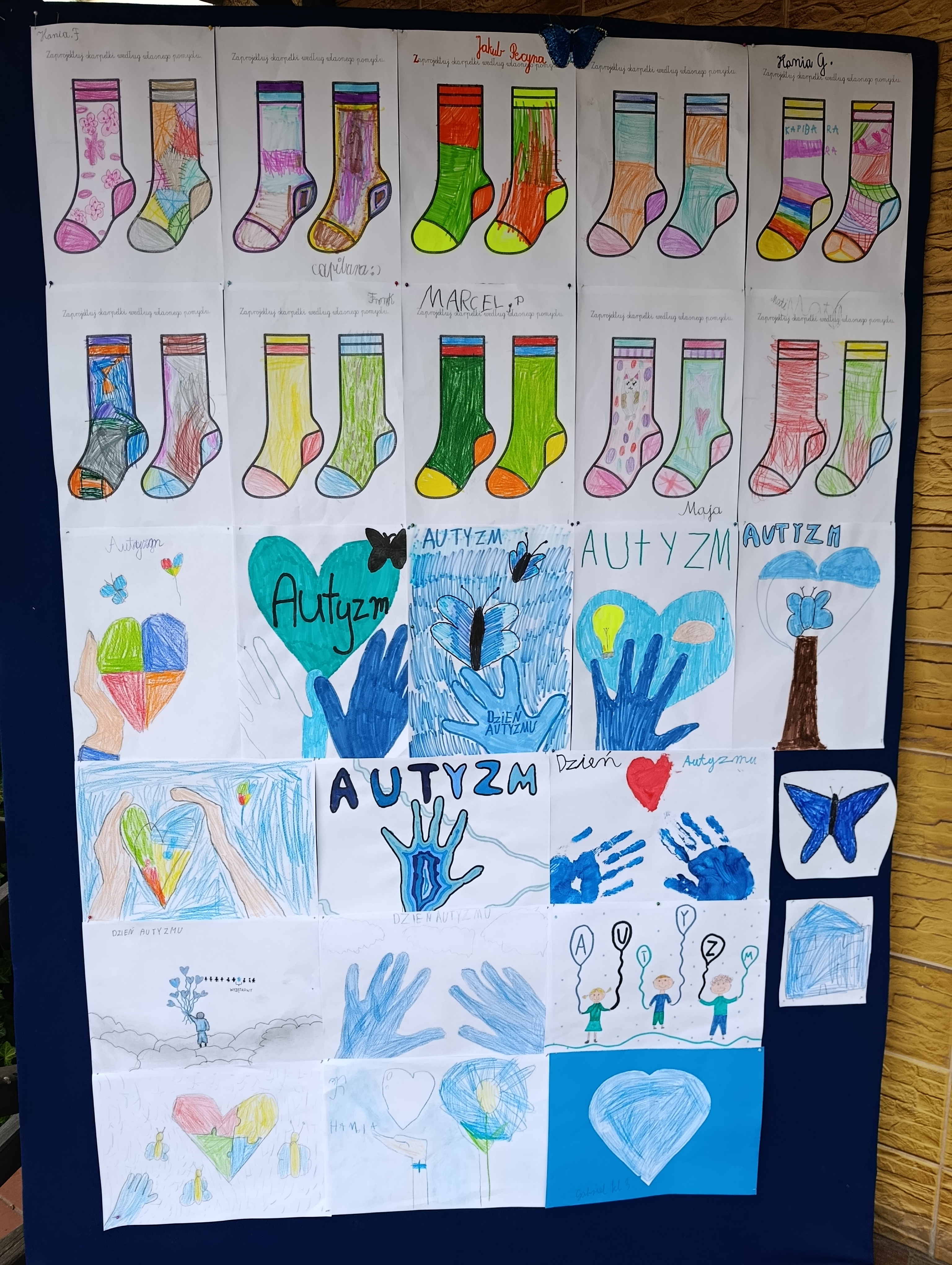 Z tej okazji uczniowie przyszli ubrani na niebiesko- kolor symbolizujący solidarność z osobami w spektrum autyzmu- oraz założyli kolorowe skarpetki, nie do pary skarpetki, będące wyrazem otwartości na inność i indywidualność każdego człowieka.