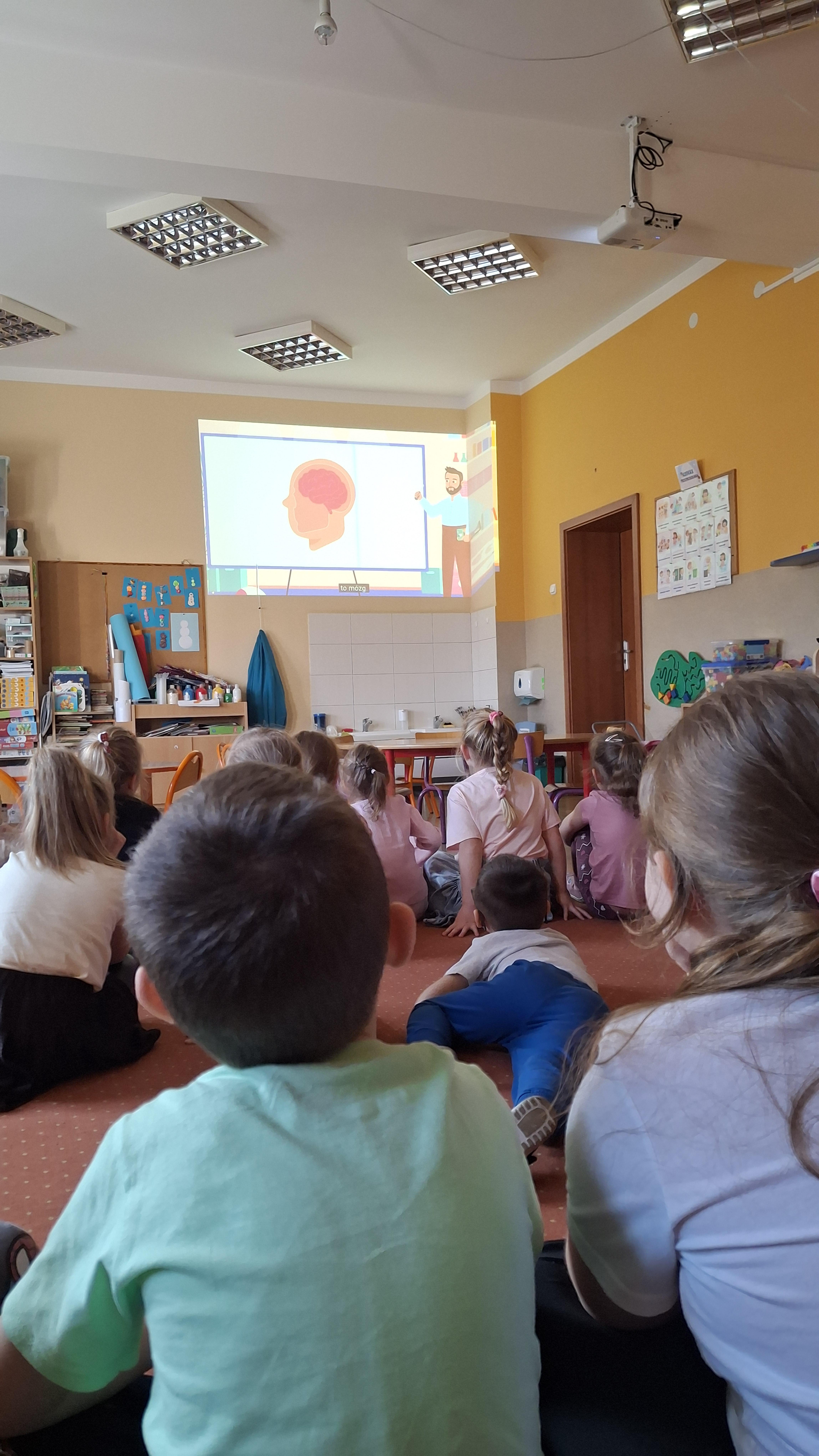 Dzieci dowiedziały się, że mózg jest najważniejszym komputerem, jaki posiadamy. Dzięki ciekawym prezentacjom i pogadankom przedszkolaki odkryły, jak to się dzieje, że czujemy, myślimy, poruszamy się i zapamiętujemy ulubione bajki. Dowiedziały się również, co mózg lubi najbardziej: zdrowe jedzenie, wodę, sen oraz dużo ruchu!