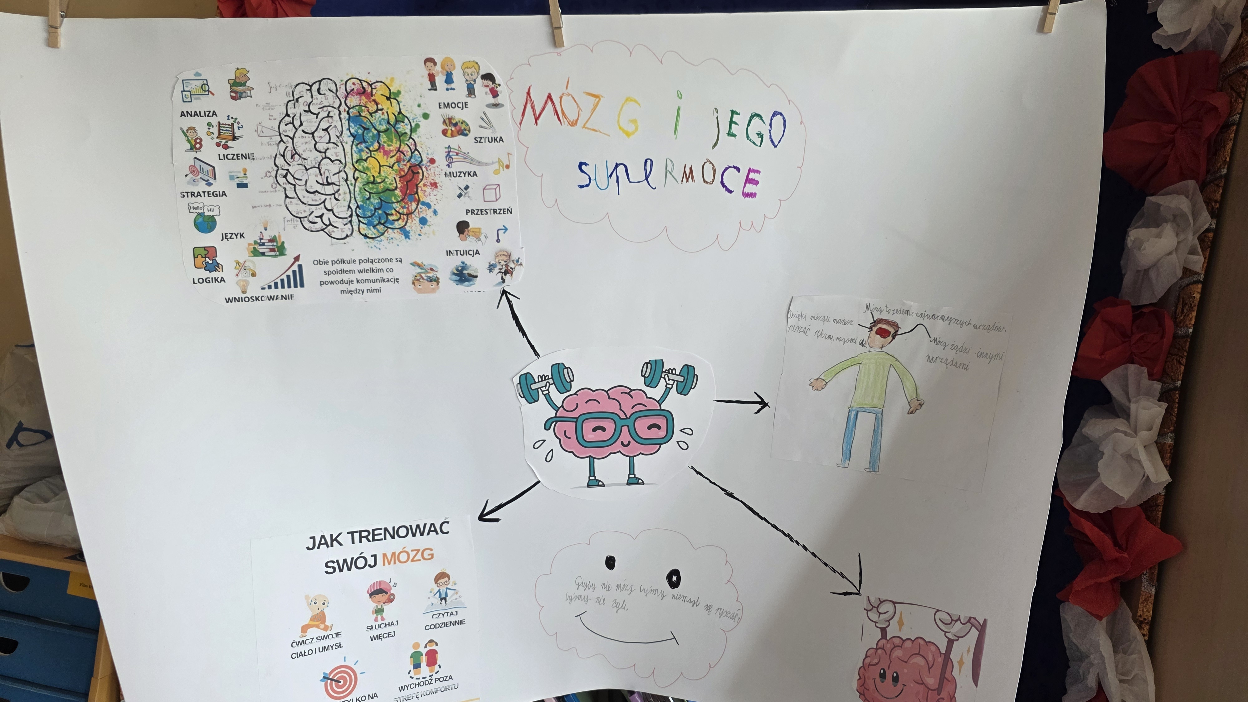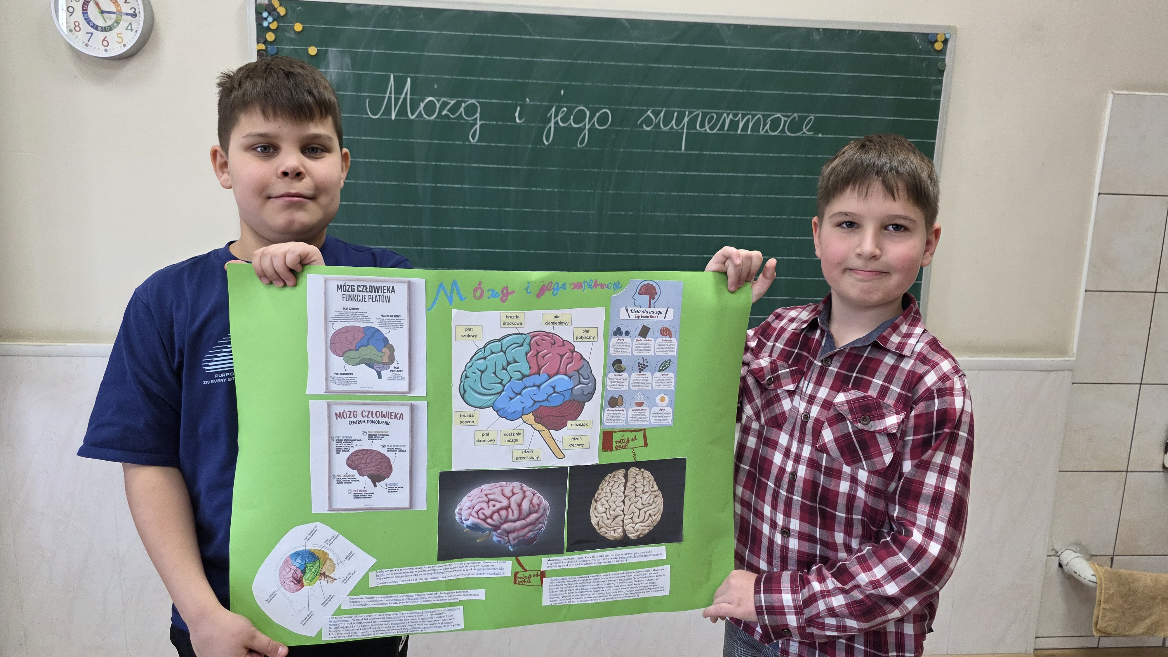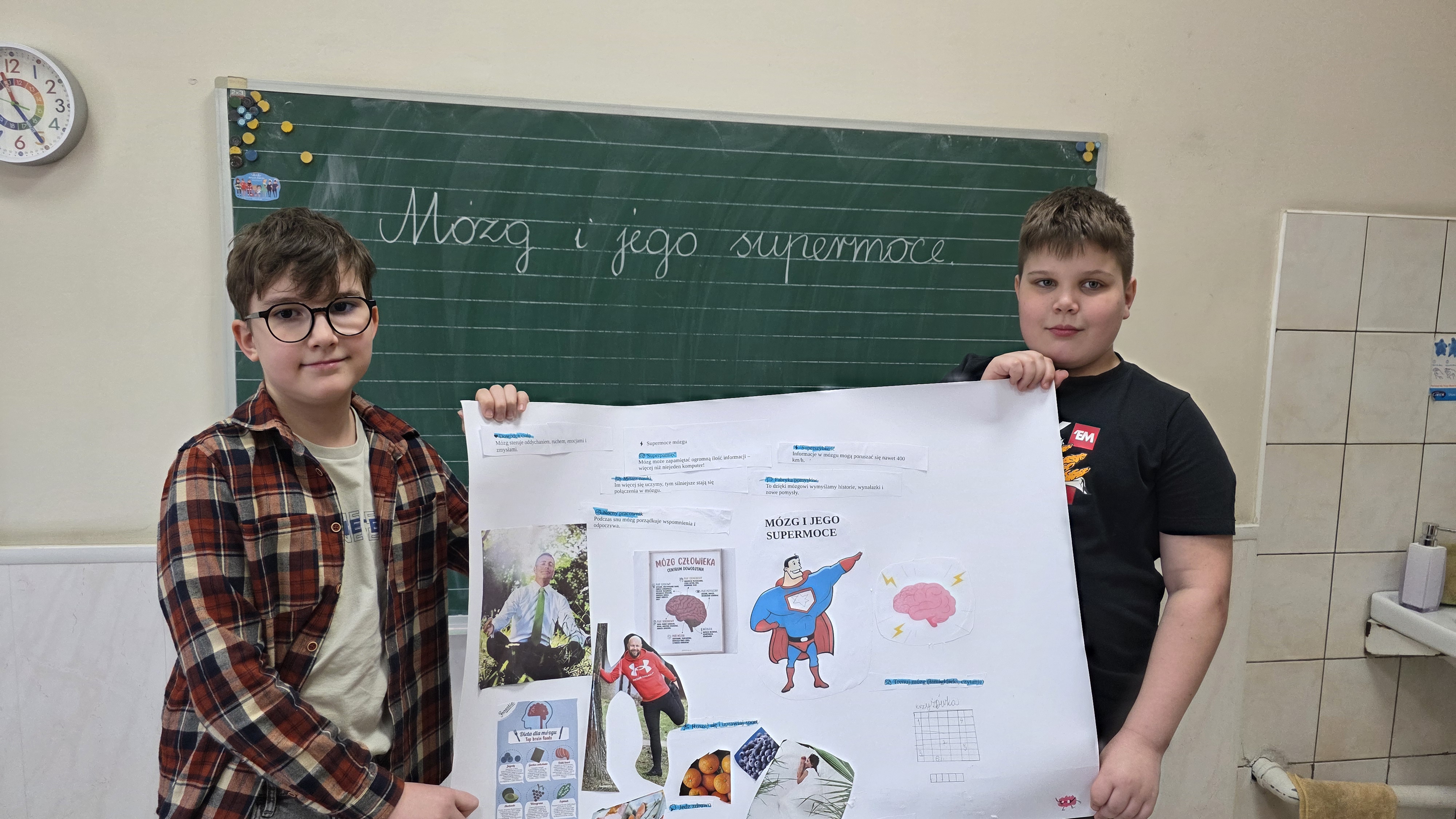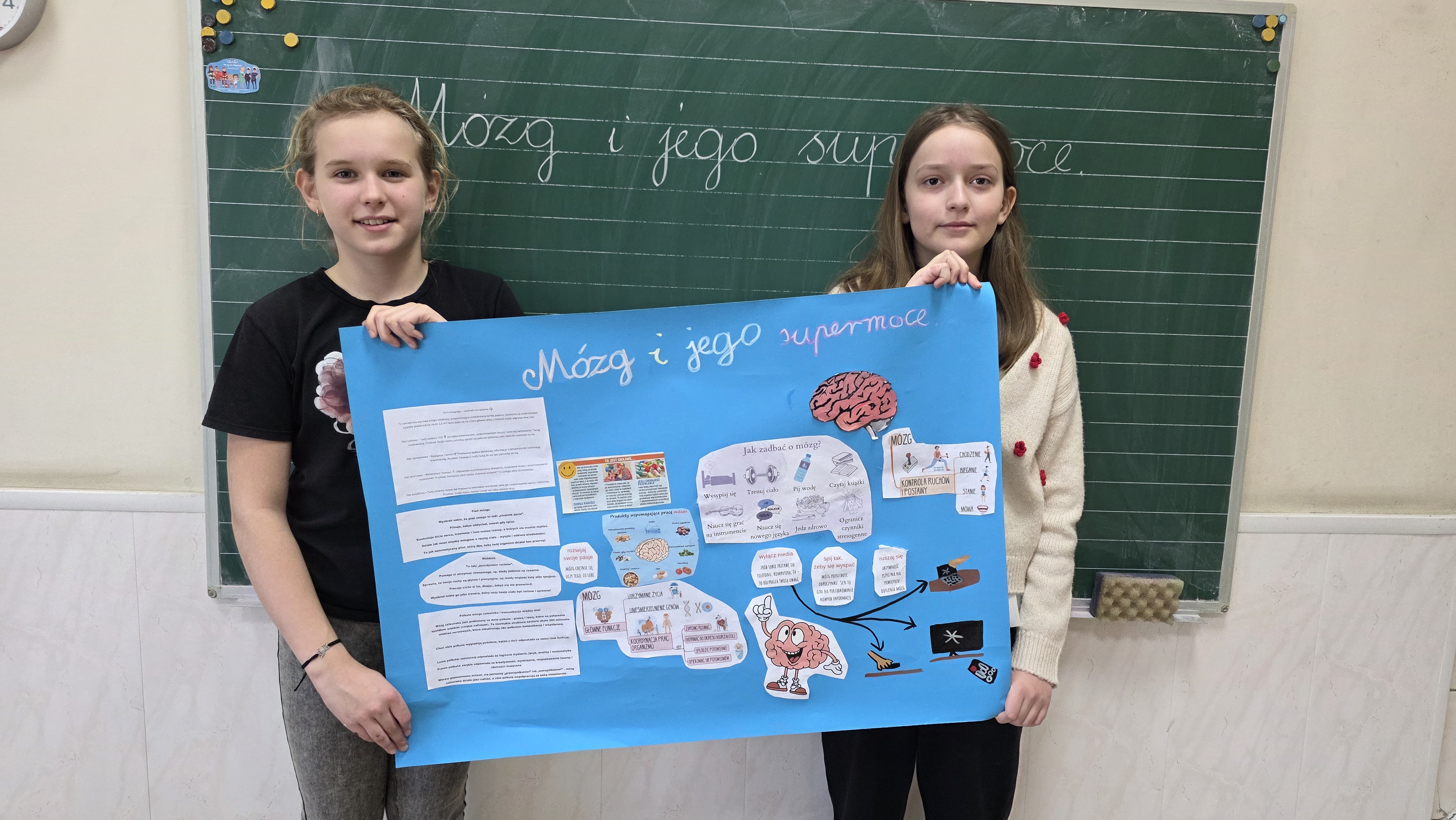 Jednym z głównych zadań było przygotowanie plakatów pod hasłem "Mózg i jego supermoce". Uczniowie z dużym zaangażowaniem przedstawiali na nich najważniejsze funkcje mózgu, oraz jego niezwykłe możliwości, wykazując się przy tym pomysłowością i estetyką wykonania.