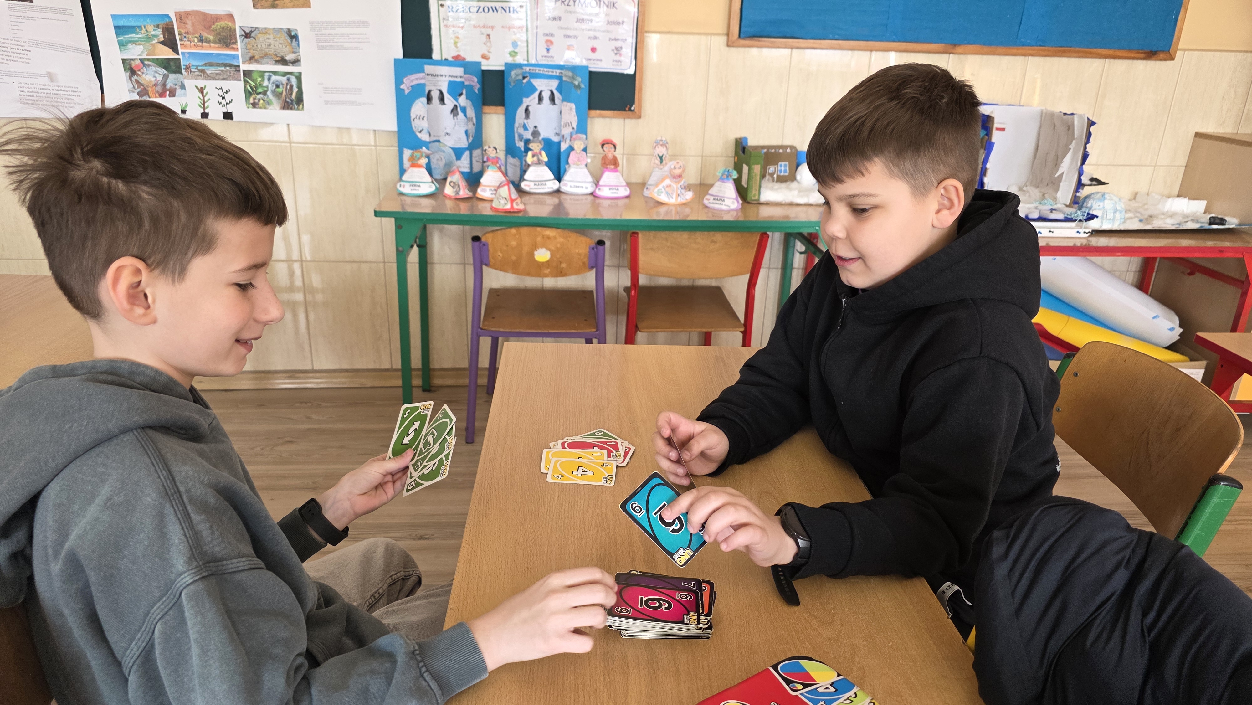 Nie zabrakło nauki poprzez zabawę. Dzieci chętnie uczestniczyły w grach planszowych, które rozwijały koncentrację, spostrzegawczość i umiejętność strategicznego myślenia.