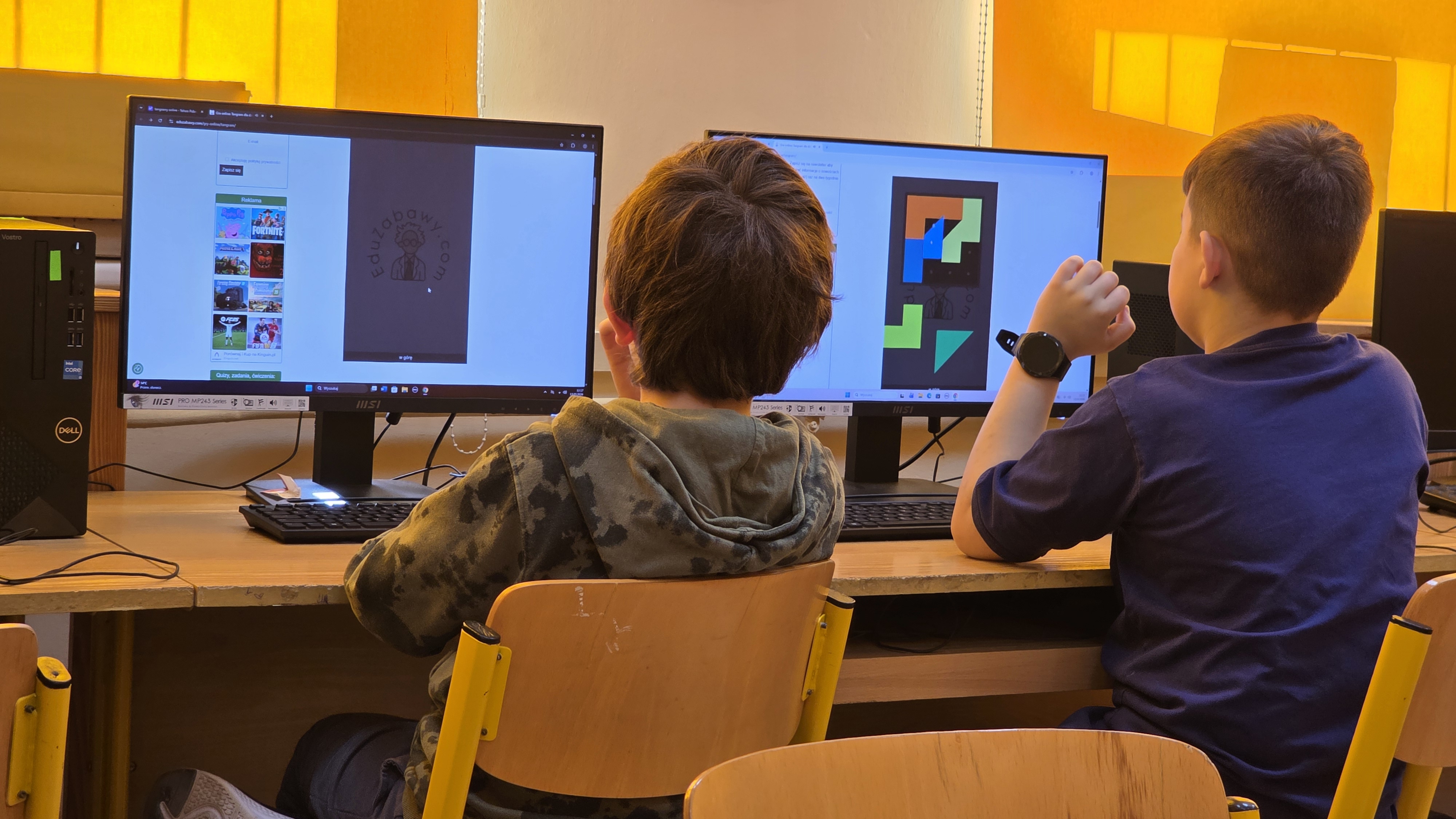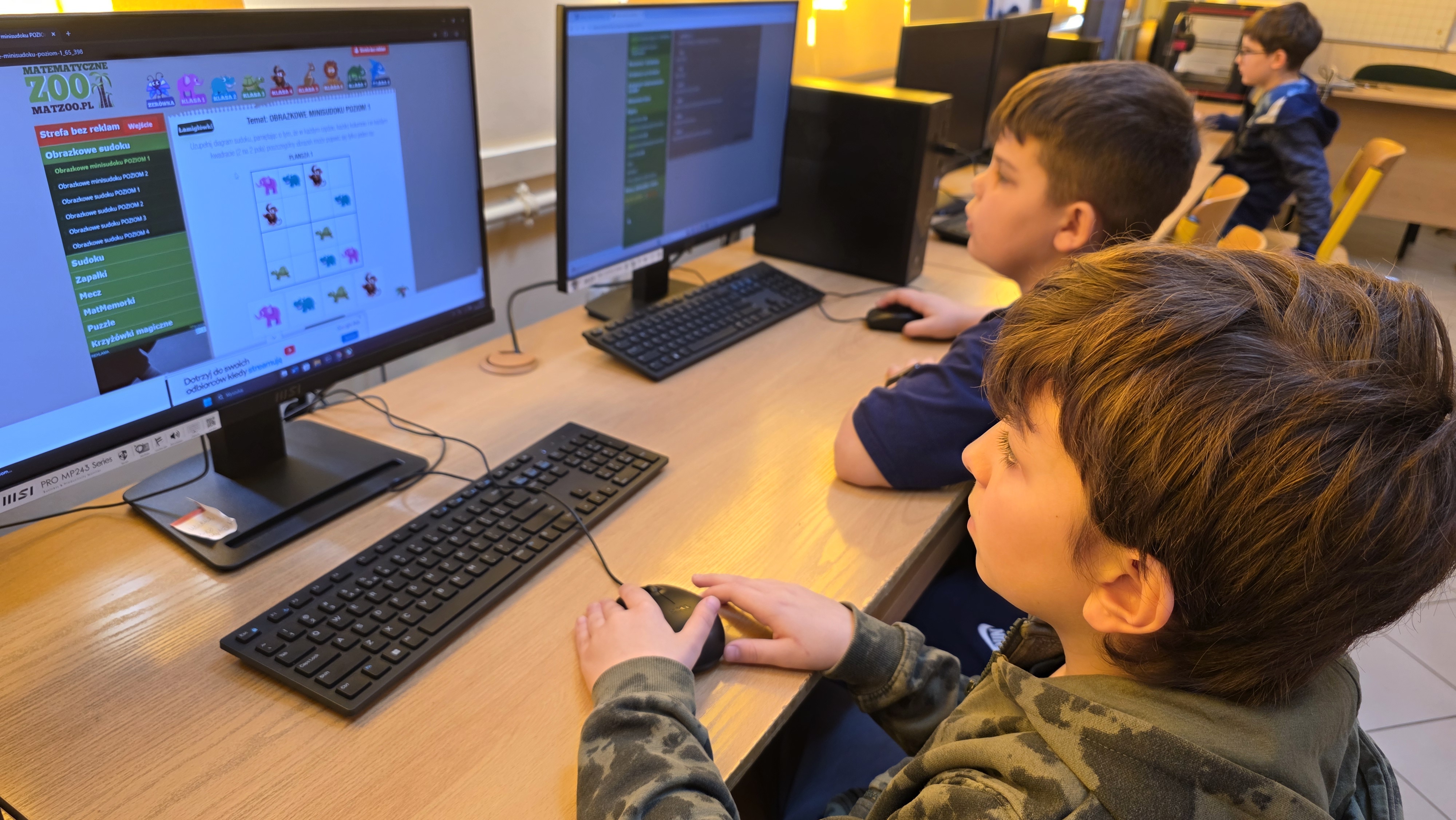 Podczas zajęć z informatyki uczniowie korzystali z narzędzi online, rozwiązując tangramy oraz sudoku. Zadania te doskonaliły logiczne myślenie, cierpliwość i zdolność rozwiązywania problemów.