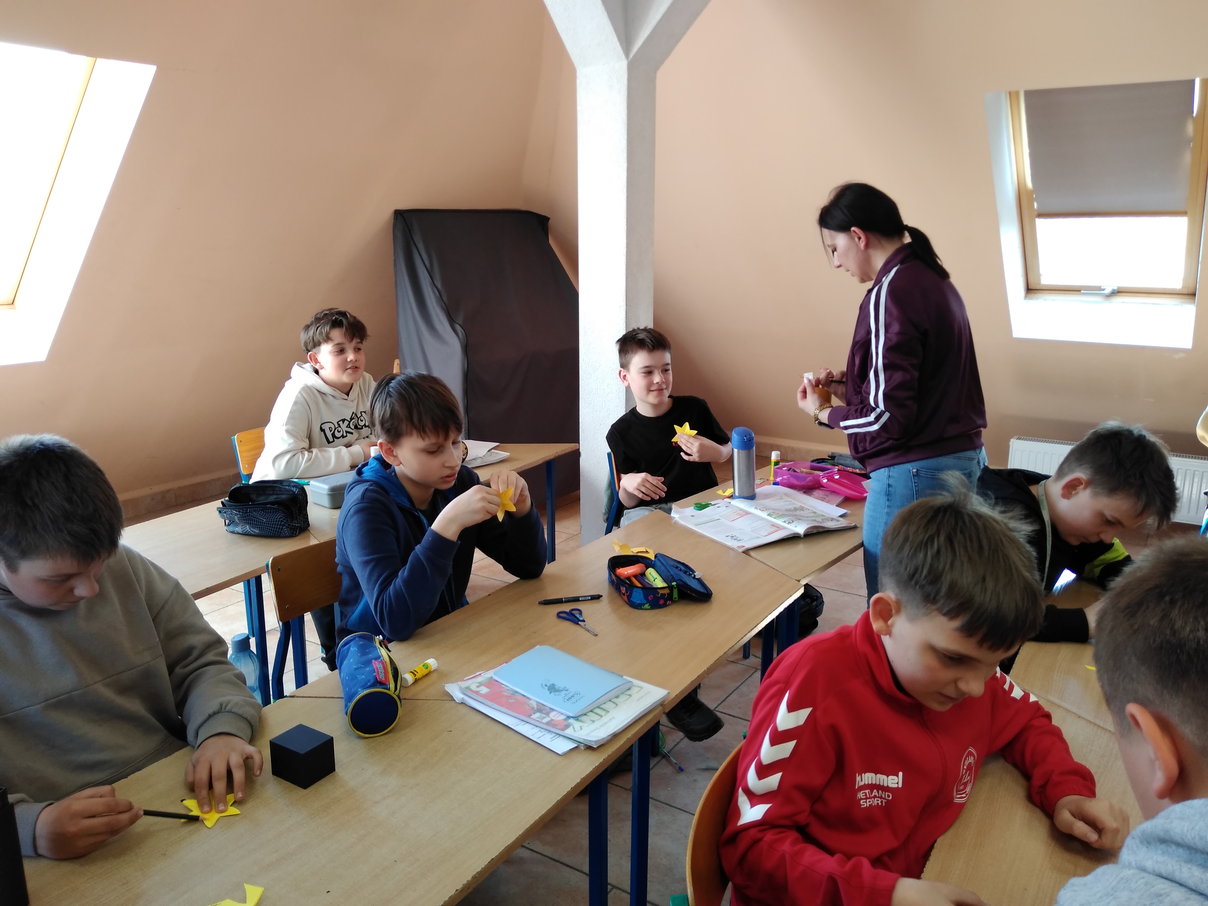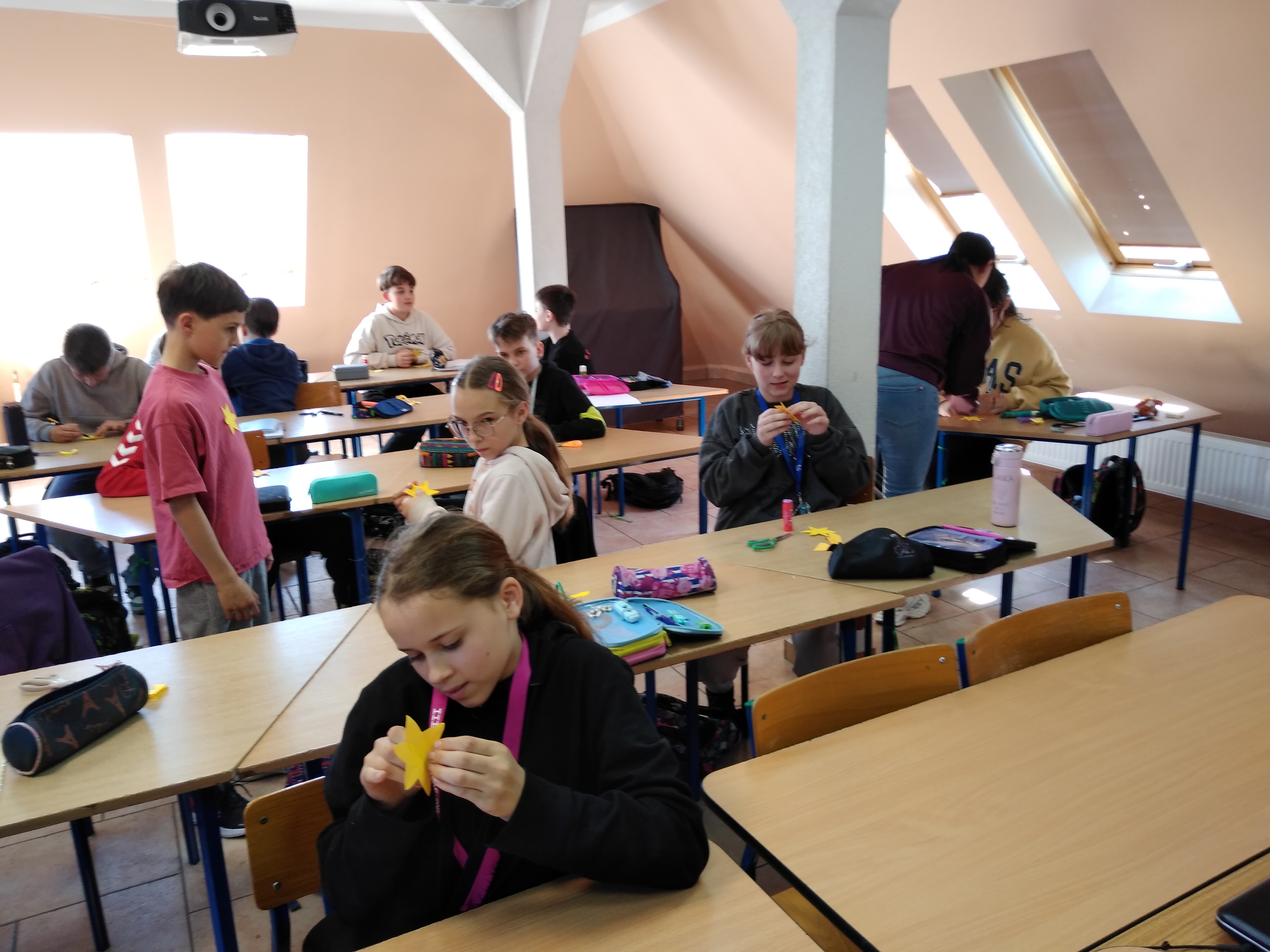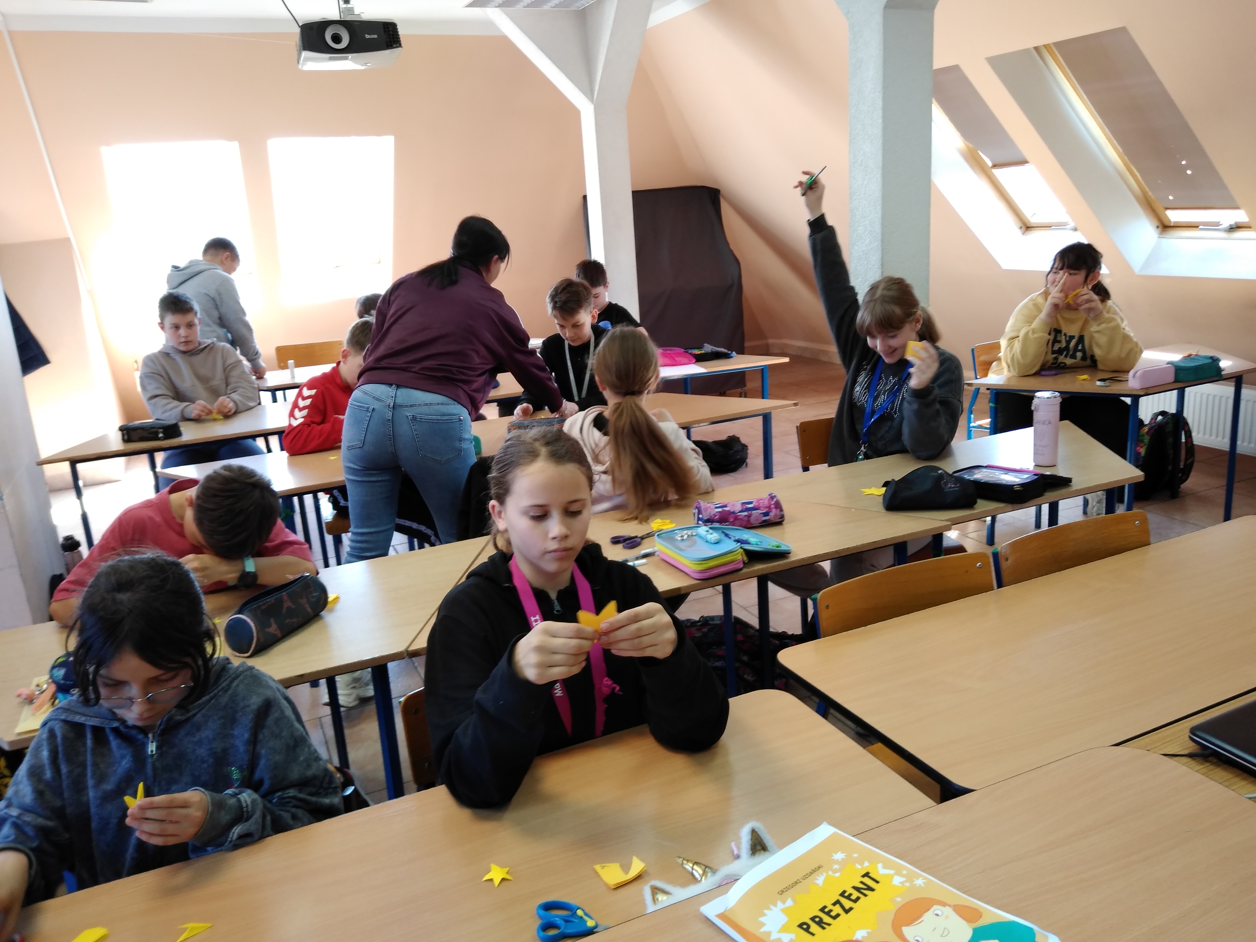 17 kwietnia br. uczniowie klasy 5 spotkali się z pracownikiem biblioteki p. Pauliną Woźniak. Celem spotkania był udział w akcji społeczno-edukacyjnej „Żonkile 2026”. Uczniowie poznali historię powstania w warszawskim getcie, rozmawiali o szacunku i godności wobec innych ludzi, dyskutowali na temat wysłuchanego tekstu pt. „Prezent”. Później uczniowie wykonali papierowe żonkile, które przyczepione do ubrań dumnie nosili na kolejnych lekcjach i przerwach. U. Kołodziejska