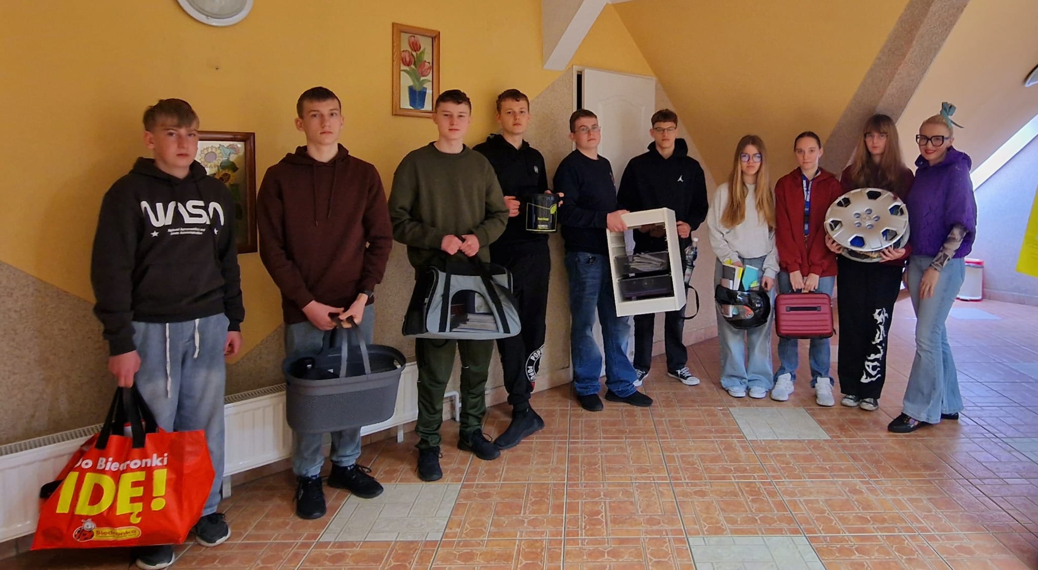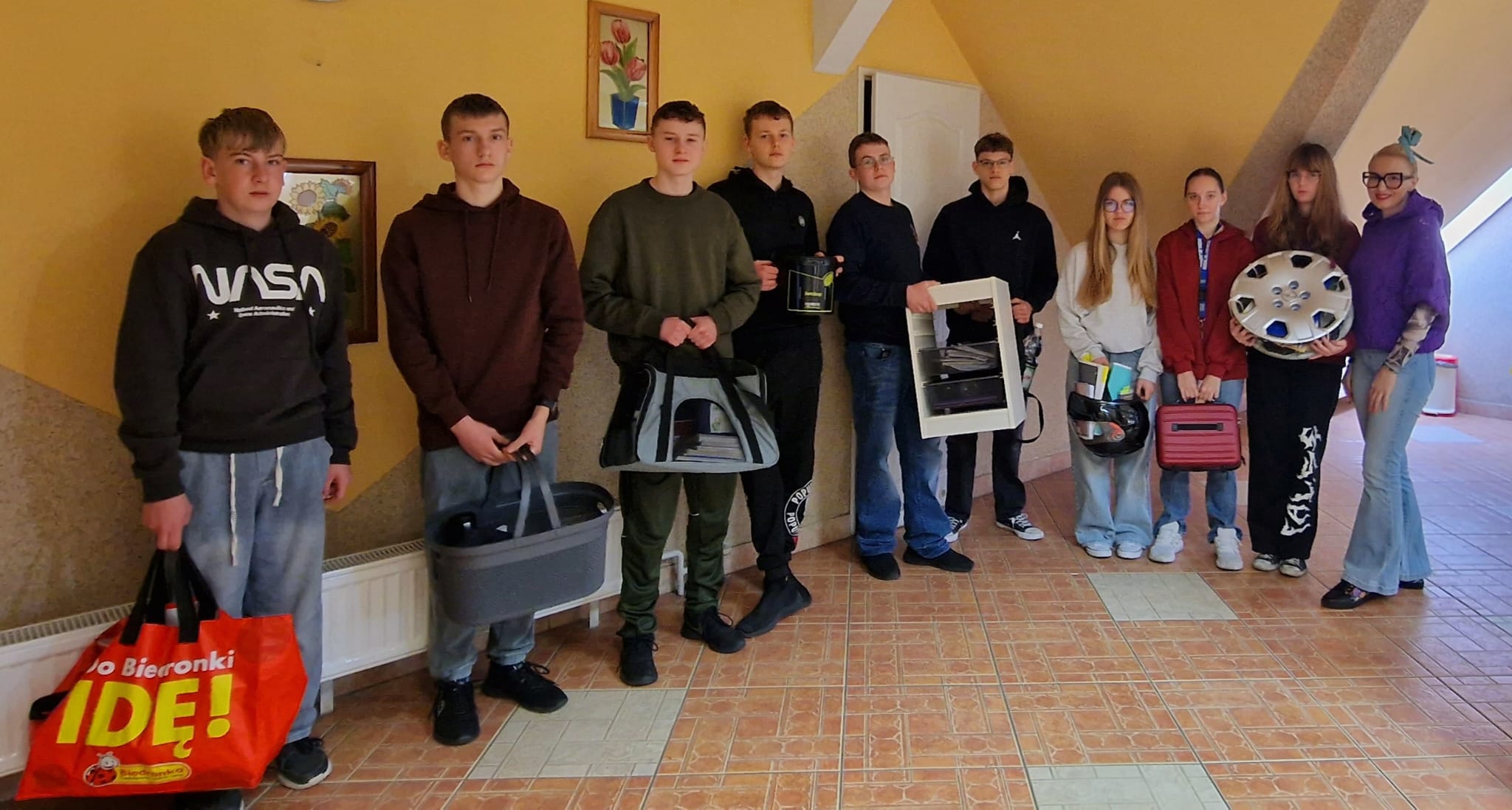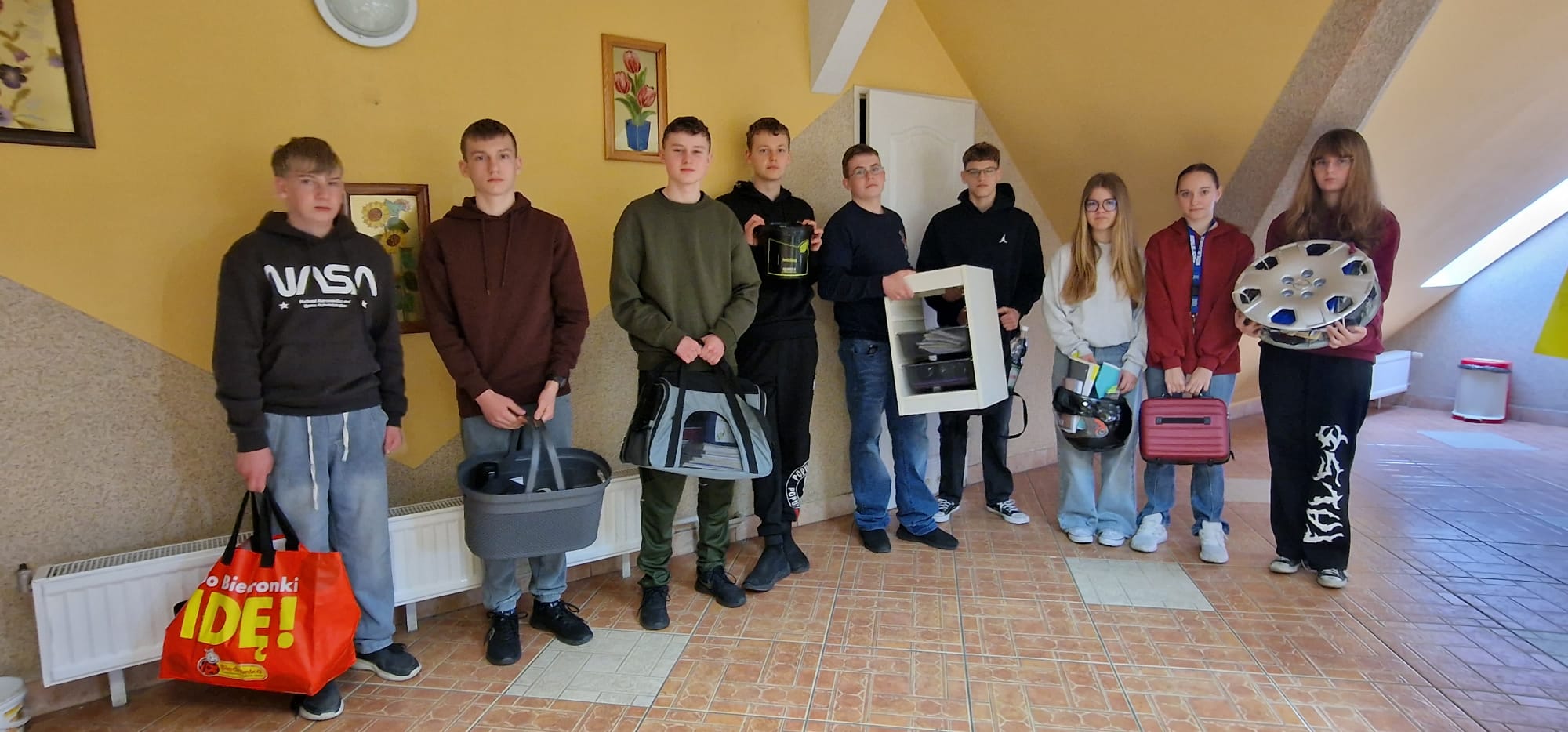 Oznaki wiosny możemy spotkać już wszędzie... W czwartek 19. marca również w naszej szkole były one zauważalne - w klasach, na korytarzach, na głowach uczniów i w rękach dzierżących zamiast plecaków inne przedmioty, w które zapakowane były zeszyty, książki i przybory. Nasza klasa również włączyła się w obchody Wiosennego Szalonego Dnia, bo chcieliśmy powitać wiosnę w sposób radosny i kreatywny. Musimy przyznać, że pomysłów nam nie brakowało... Zobaczcie sami...